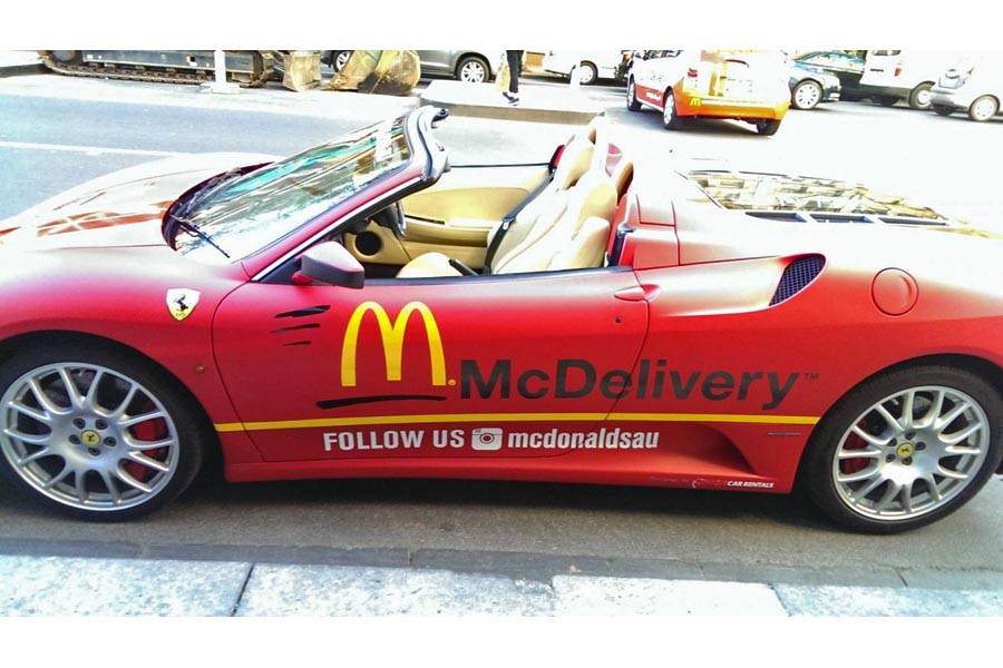 Ο πιο τυχερός οδηγός ίσως στον κόσμο που δουλεύει σε ντελιβεράδικο είναι δίχως αμφιβολία αυτός ή αυτοί που πηγαίνουν τις παραγγελίες του fast food μέσω της εικονιζόμενης Ferrari F430! Απίστευτο και όμως αληθινό και συμβαίνει στη Μελβούρνη της Αυστραλίας. Το τοπικό τμήμα των McDonalds είχε αυτή την ιδέα προώθησης και από τον Αύγουστο δουλεύει πολύ καλά. Φανταστείτε τι θα γίνει αν ανακοινώσουν από αγγελία ότι ζητούν ντελιβερά για την F430…