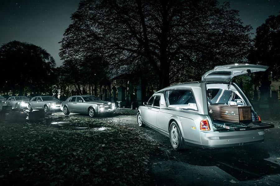 Το γραφείο κηδειών A.W. Lymn με έδρα στο Νότινγκαμ της Μ. Βρετανίας πρόσθεσε στον στόλο των νεκροφόρων της το απόλυτα χλιδάτο όχημα για το τελευταίο αντίο, μια ειδικά διασκευασμένη Rolls-Royce Phantom! Παράλληλα, η εν λόγω εταιρεία διαθέτει άλλες δέκα επιβατικές Rolls-Royce Phantom για την μεταφορά της οικογένειας τη θλιβερή μέρα της κηδείας, ενώ συνολικά υπάρχουν 39 Rolls-Royce και Bentley διαθέσιμες στο γραφείο κηδειών. Η νεκροφόρα Phantom μπορεί να πάσχει καλαισθησίας, ωστόσο αναμφίβολα είναι εντυπωσιακή.