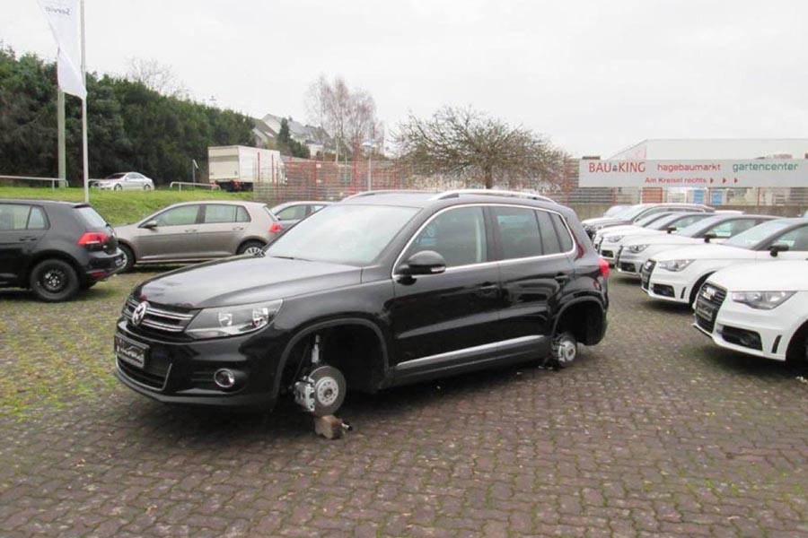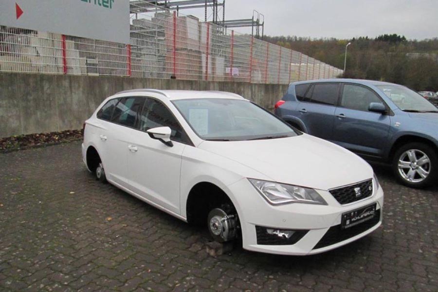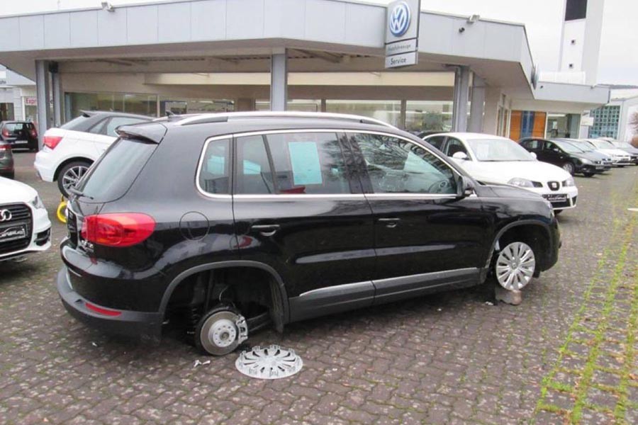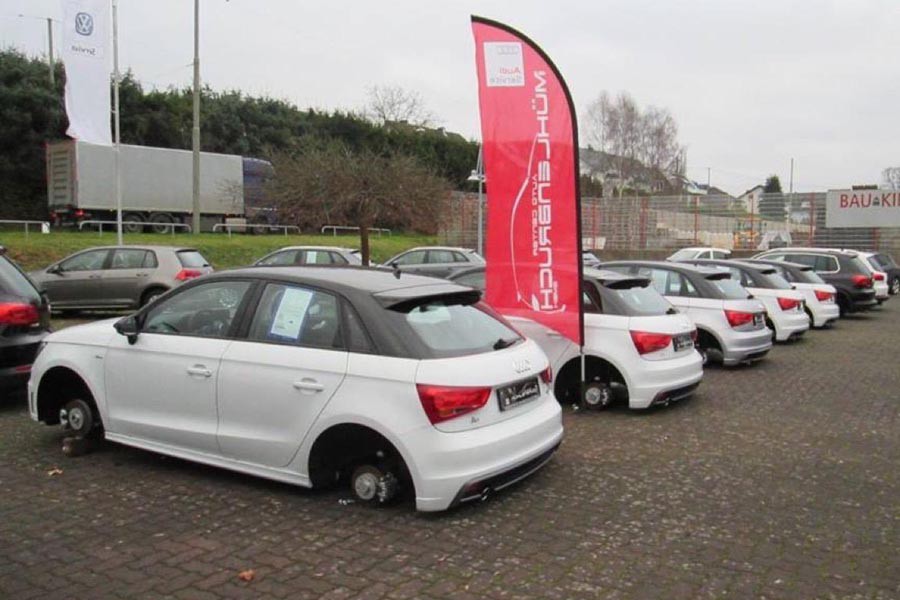 Με ένα απρόσμενο θέαμα ήρθε αντιμέτωπος ο ντίλερ της Audi και VW Auto Center Mühlenbruch GmbH στη Γερμανία, αφού κλέφτες αφαίρεσαν πολλές τετράδες ζαντών και ελαστικών από ολοκαίνουργια μοντέλα, όπως A1, Tiguan αλλά και από SEAT Leon. Η ζημιά που υπέστη είναι σίγουρα αρετών χιλιάδων ευρώ, ενώ γίνονται έρευνες από τη Γερμανική αστυνομία για την εξιχνίαση των κλεφτών. Να υπενθυμίσουμε ότι πριν από λίγο καιρό κλέφτες είχαν αφαιρέσει τα εμπρός φωτιστικά σώματα από Mercedes, ενώ άλλοι από Porsche ζητώντας λύτρα.