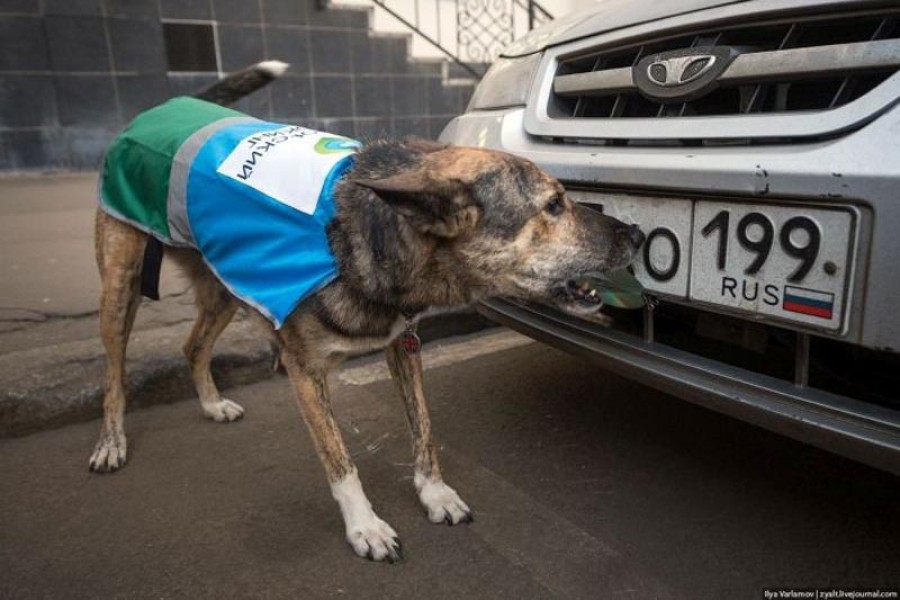 Η τροχαία της Μόσχας σκέφτηκε ένα έξυπνο και πιο γρήγορο τρόπο να αντιμετωπίσει τους οδηγούς που καλύπτουν τις πινακίδες κυκλοφορίας των οχημάτων τους με διάφορα αντικείμενα (σακούλες, χαρτιά, μέχρι και CD), προκειμένου να γλιτώσουν τα πρόστιμα από τις παρανομίες στους δρόμους. Αντί λοιπόν οι αστυνομικοί να αφαιρούν από τις πινακίδες τα παράνομα τοποθετημένα αντικείμενα και λαμβάνοντας υπόψη ότι μπορεί να δημιουργηθεί παρεξήγηση προσέλαβαν 10 ειδικά εκπαιδευμένους σκύλους να κάνουν τη… βρώμικη δουλειά. Ίσως αργότερα να μάθουν τα πολύ συμπαθή τετράποδα να κόβουν και κλήσεις!