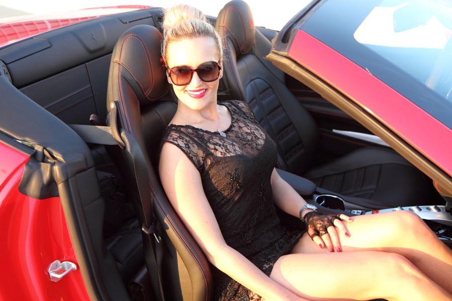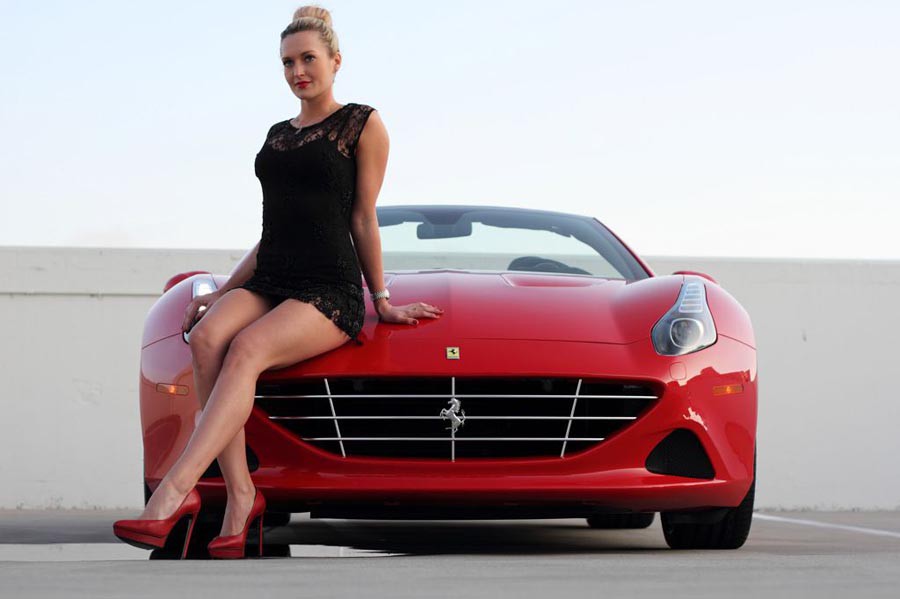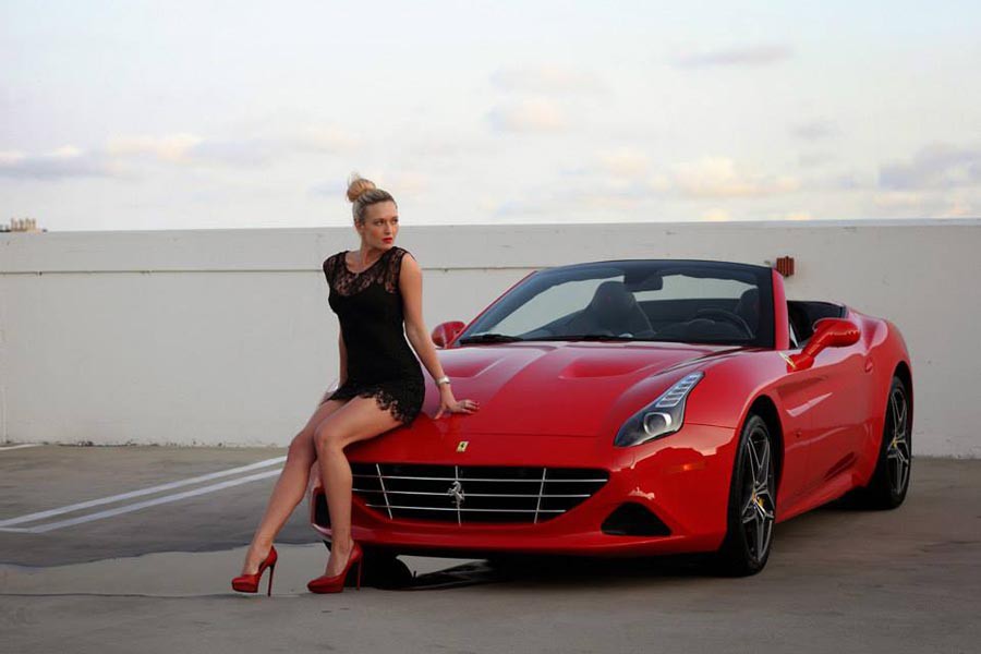 Η νέα Ferrari California T μπορεί -όπως και οποιαδήποτε άλλη Ferrari- να είναι ένα άπιαστο όνειρο για πολλούς, ωστόσο ίσως, έστω και για μια μέρα μπορεί κάποιος να την κάνει δική του, με το ανάλογο αντίτιμο βεβαίως. Η εταιρεία Fast Toys Club με έδρα στο Λος Άντζελες διαθέτει προς ενοικίαση την εν λόγω Ferrari (καθώς και πολλά άλλα μοντέλα), έναντι του ποσού των 1.299 δολαρίων ημερησίως (1.210€), των 8.199 δολαρίων για μια εβδομάδα (7.635€), ή από μόλις 500 δολάρια για τα μέλη. Πάντως το ξανθό μοντέλο που ποζάρει με τις ασορτί κόκκινες ψηλές γόβες, μάλλον δεν περιλαμβάνεται στην τιμή.