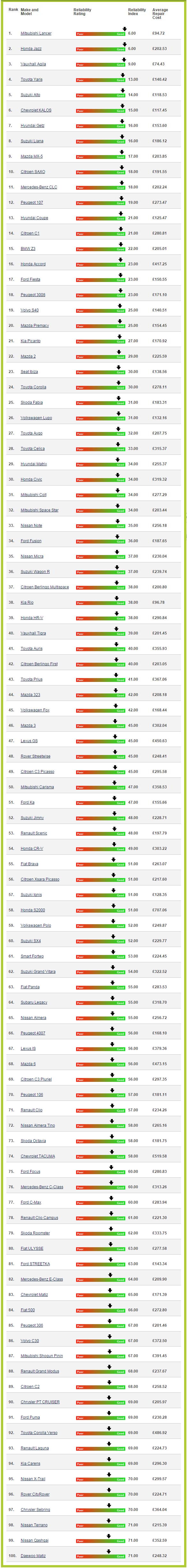 Δείτε παρακάτω τα 100 πιο αξιόπιστα αυτοκίνητα σύμφωνα με την έρευνα: