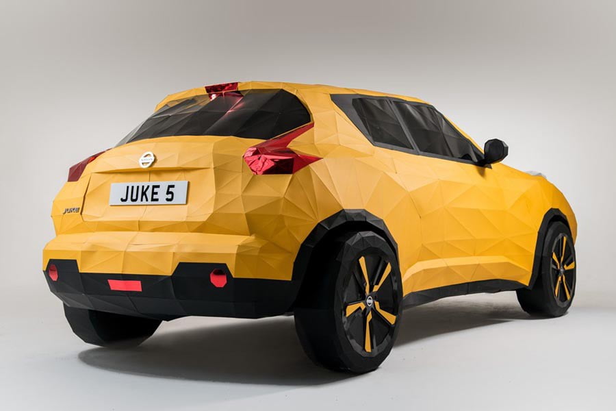Το Origami είναι η μορφή τέχνης διπλώματος του χαρτιού και προέρχεται από την Ιαπωνία. Εμπνευσμένος από την Ιαπωνική κληρονομιά της Nissan αλλά και από τα πρώιμα στάδια σχεδιασμού των αυτοκινήτων, ο Βρετανός καλλιτέχνης του Origami Owen Gildersleeve, έφτιαξε με τα χέρια του ένα περίπλοκο αντίγραφο του Juke από χαρτί, με βάση τις ακριβείς διαστάσεις του πραγματικού μοντέλου. Η όλη κατασκευή διήρκεσε πάνω από 200 ώρες και διπλώθηκαν πάνω από 2.000 κομμάτια χαρτιού, προκειμένου να αποδοθεί αυτό το πραγματικά τέλειο αποτέλεσμα.