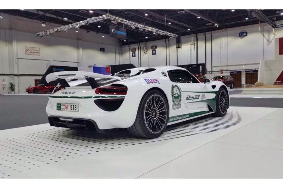 Η αστυνομία του Ντουμπάι διαθέτει την πιο εξωτική συλλογή περιπολικών, αφού στον στόλο της περιλαμβάνονται μοντέλα όπως είναι η Bugatti Veyron, Lamborghini Aventador, McLaren MP4-12C, Aston Martin One-77, Mercedes SLS AMG, Bentley Continental, Audi R8, BMW i8, Lexus RC F κ.λπ. Σε όλα αυτά τα μοντέλα που θα ήθελαν πολλοί ως ιδιωτικό αυτοκίνητο προστέθηκε ένα ακόμα, μία Porsche 918 Spyder.
