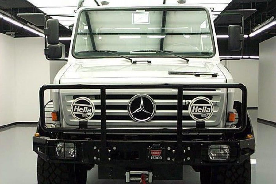 Το διαχρονικό και αειθαλές αυτό εκτός δρόμου φορτηγό της Mercedes, αν και είναι 39 ετών (μοντέλο του 1977), έχει διανύσει μόλις 1.865 μίλια (3.000 χλμ.) και μοιάζει σαν καινούργιο. Εφοδιάζεται με κινητήρα πετρελαίου 6.4 λτ., με αερανάρτηση, ηχοσύστημα, κλιματισμό, σύστημα αυτόματης ρύθμισης πίεσης των ελαστικών, κάμερα οπισθοπορείας, κ.λπ., ενώ φέρει μέχρι και την υπογραφή του Άρνολντ Σβαρτζενέγκερ.