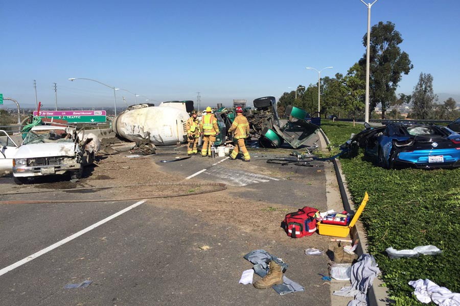 Σύμφωνα με τις αρχές το συμβάν έγινε χθες, την Πέμπτη το πρωί γύρω στις 8:40 το πρωί, όταν ένα pick-up συγκρούστηκε με μπετονιέρα, η οποία ανατράπηκε πάνω στο διαχωριστικό και παρέσυρε το BMW i8. Από την σύγκρουση τραυματίστηκε ένας ακόμα 50χρονος πιο σοβαρά αλλά η κατάστασή του βελτιώνεται.