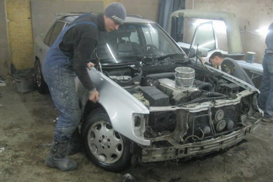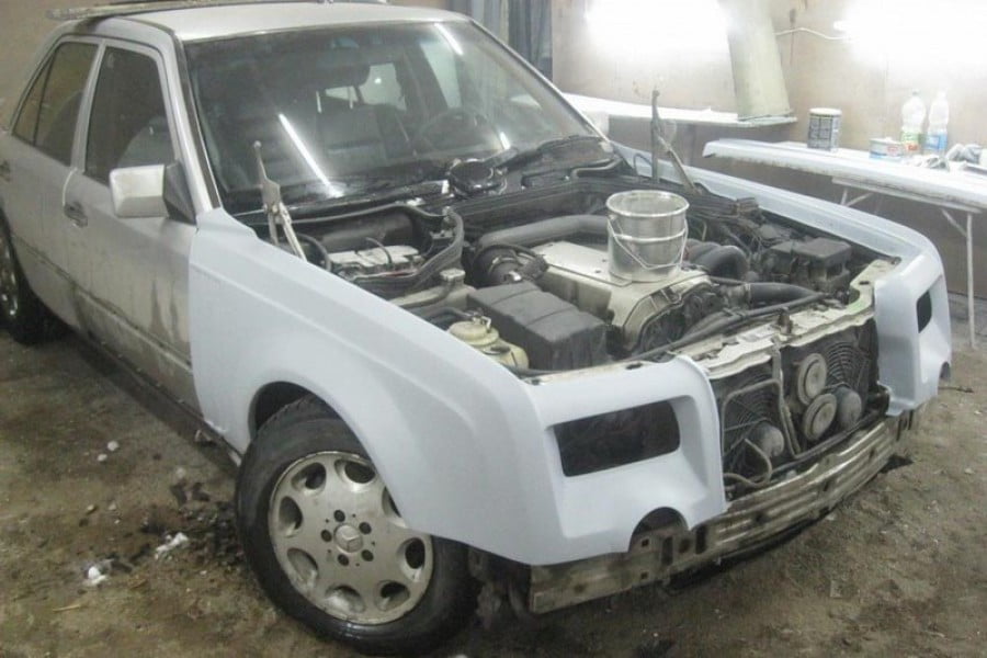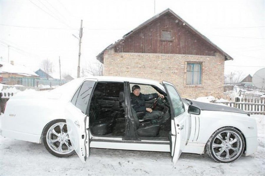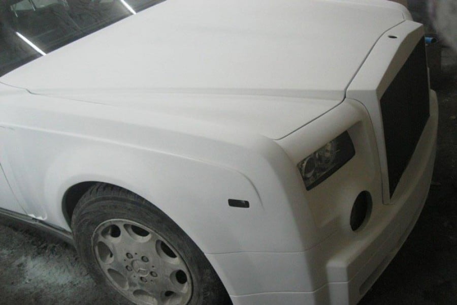 Και όμως ένας μεγάλος «μάστορας» από το Καζακστάν πήρε μια τέτοια παλιά E-Class και την έκανε στην κυριολεξία αγνώριστη. Τόσο το εμπρός όσο και το πίσω μέρος της Mercedes άλλαξαν πλήρως και μόνο το κεντρικό τμήμα της καμπίνας διατηρήθηκε, αλλά και πάλι όχι όπως ήταν πριν. Οι πόρτες για παράδειγμα ανοίγουν με αντίθετη φορά, όπως στην πραγματική Rolls-Royce Phantom.