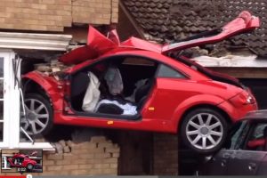 Ένα πρώτης γενιάς Audi TT απογειώθηκε στην κυριολεξία και σφηνώθηκε στην γωνία ενός σπιτιού, αφού πρώτα πέρασε πάνω από δύο άλλα αυτοκίνητα, μια BMW Σειρά 3 Coupe και ένα Audi A4 Avant προκαλώντας τους σοβαρές υλικές ζημιές. Το… ιπτάμενο TT αφού γκρέμισε ένα μεγάλο μέρος ενός τοίχου έμεινε σφηνωμένο μέχρι τη μέση του αμαξώματός του, διαταράσσοντας την ησυχία που επικρατούσε στην γειτονιά του Long Meadow Walk στο Lowerstoft της Αγγλίας. Σύμφωνα με το BBC ο οδηγός του ΤΤ, ηλικίας 20 ετών μεταφέρθηκε στο πλησιέστερο νοσοκομείο με σοβαρά τραύματα στο κεφάλι, ωστόσο από τύχη δεν τραυματίστηκε κάποιος περαστικός ή ένοικος του σπιτιού.