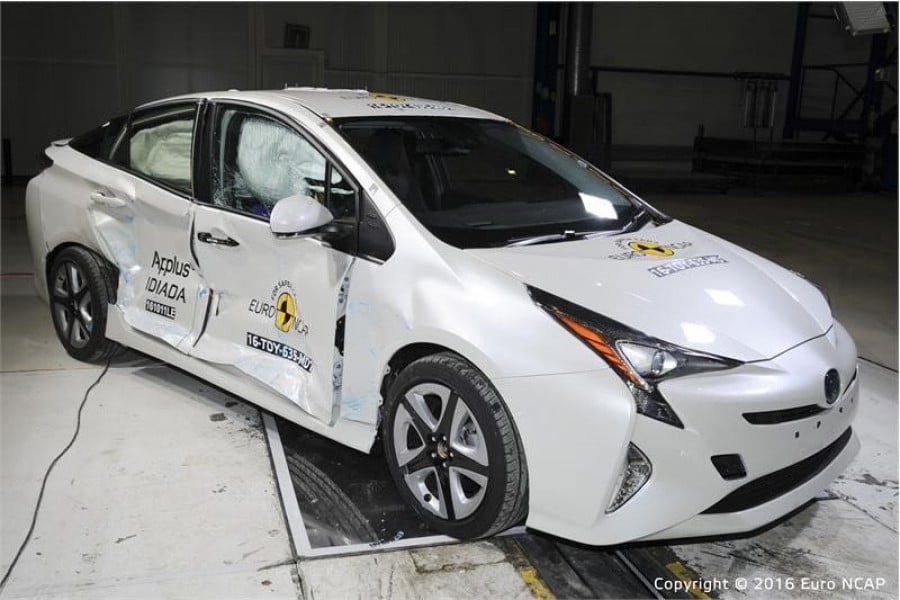 Το Prius εφοδιάζεται στάνταρ με το Toyota Safety Sense, το οποίο περιλαμβάνει και σύστημα αναγνώρισης πεζών και βοήθησε στο να λάβει τη μέγιστη αξιολόγηση των 5 αστεριών. Η δομή της καμπίνας προστάτεψε αποτελεσματικά τους επιβάτες και μόνο στο στήθος του οδηγού καταγράφηκαν υψηλές δυνάμεις καταπόνησης.
