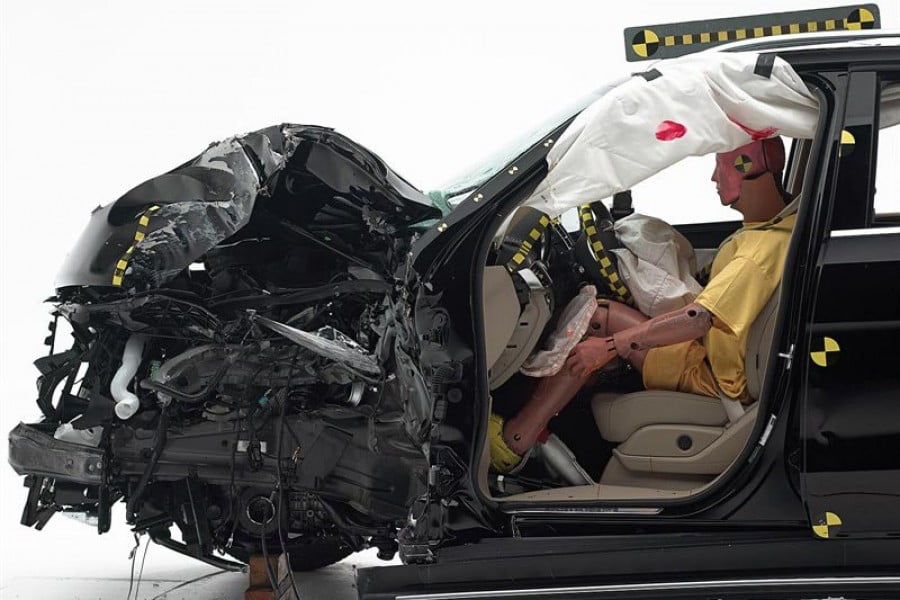 Στη μετωπική πρόσκρουση μικρής επιφάνειας κάλυψης, o ζωτικός χώρος του οδηγού παρέμεινε σταθερός σε αρκετά ικανοποιητικό βαθμό. Η μέγιστη εισχώρηση στα πεντάλ έφτασε τα 18 εκατοστά αλλά εγκυμονώντας χαμηλό κίνδυνο σοβαρού τραυματισμού, ενώ το ταμπλό μετακινήθηκε προς την καμπίνα κατά 9 εκατοστά. Ελεγχόμενες ήταν οι κινήσεις του ανδρείκελου, το κεφάλι του οποίου προστατεύτηκε αποτελεσματικά από τους αερόσακους.