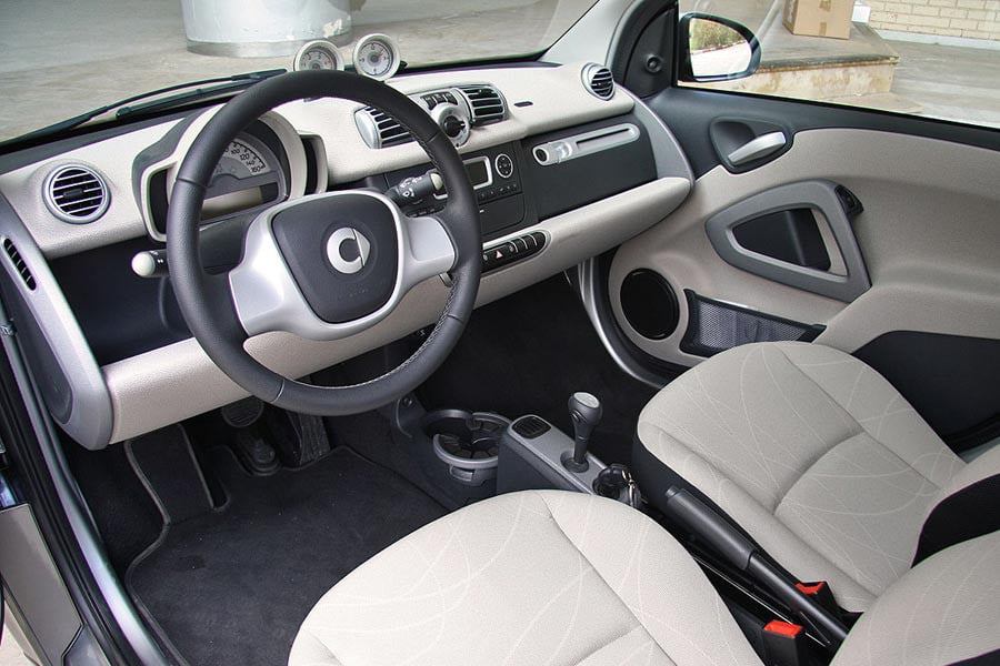Σε σχέση με τις βενζινοκίνητες εκδόσεις του, το ντίζελ fortwo δεν παρουσιάζει καμία αλλαγή στο εσωτερικό του και διακρίνεται για τη μοντέρνα του σχεδίαση και τον ευχάριστο διάκοσμο. Την ποιότητα αναβαθμίζει το ύφασμα που καλύπτει σχεδόν ολόκληρο το ταμπλό, ενώ τα σκληρά πλαστικά ικανοποιούν σε υφή, όπως και η στιβαρή συναρμογή. Ο οδηγός, ο οποίος κάθεται σχετικά ψηλά απολαμβάνει πολύ καλή ορατότητα και δεν θα έρθει αντιμέτωπος με κάποια εργονομική ιδιαιτερότητα. Σε επίπεδο χώρων, το αποκλειστικά 2θέσιο εσωτερικό του fortwo είναι άνετο και προσφέρει 220 λίτρα για τις απαραίτητες αποσκευές.