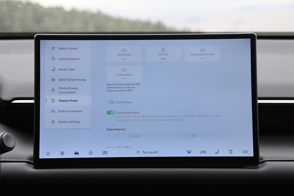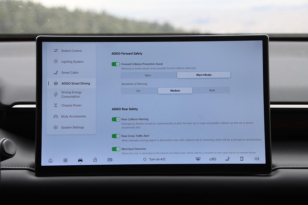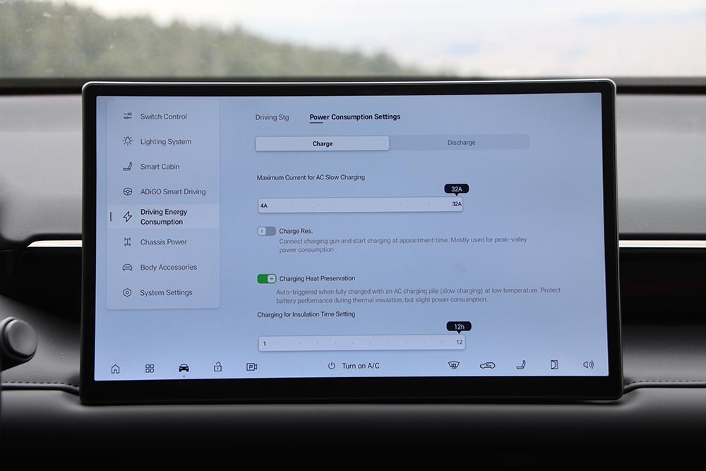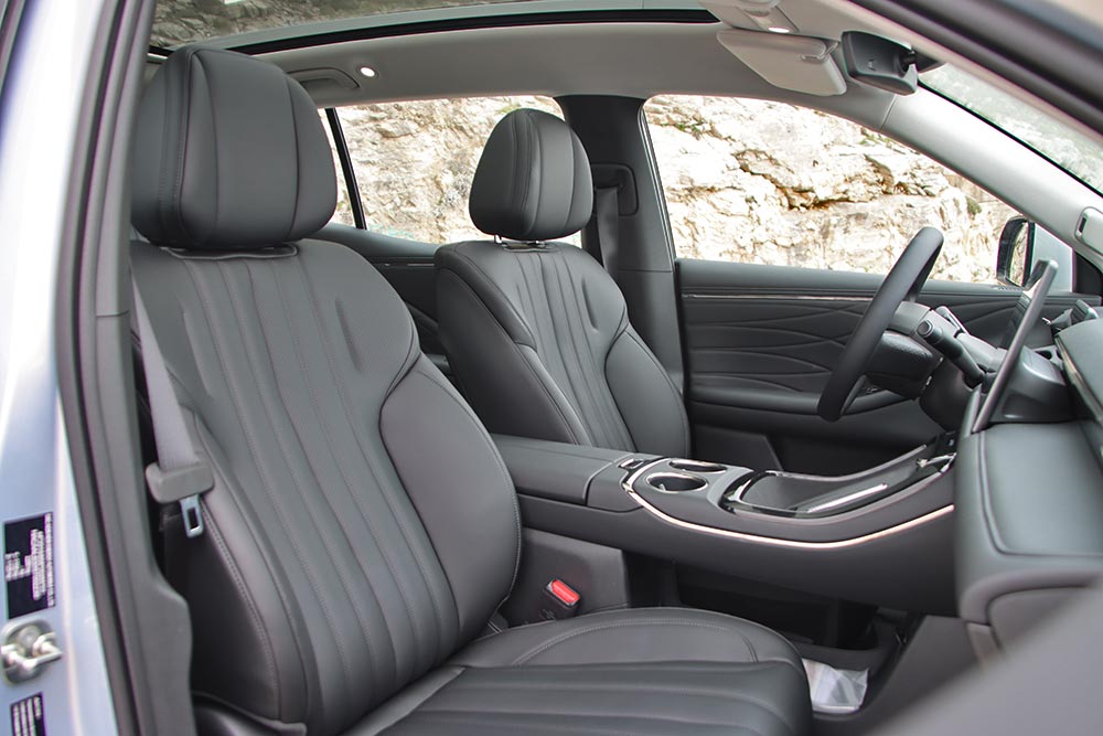 Ο τοποθετημένος εμπρός ηλεκτροκινητήρας που είναι υπεύθυνος για την κίνηση του AION V αποδίδει 204 ίππoυς και 210 Nm ροπής, μεταφέροντας την κίνηση στους αντίστοιχους τροχούς με γραμμικό και πολιτισμένο τρόπο. Τα 0-100 χλμ./ώρα έρχονται σε 7,9 δλ., με την τελική ταχύτητα να περιορίζεται ηλεκτρονικά στα 160 χλμ./ώρα. Όσο η τεχνολογία προχωράει στην εξέλιξη των μπαταριών, το ζητούμενο είναι η μεγαλύτερη αυτονομία, ο μειωμένος χρόνος φόρτισης αλλά και η μεγαλύτερη ασφάλεια σε περίπτωση σύγκρουσης. Το AION V και στους τρεις αυτούς τομείς έχει να παρουσιάσει πολύ θετικά βήματα. Το ενεργειακό περιεχόμενο της μπαταρίας των 75,26 kWh επιτρέπει στο αμάξωμα των σχεδόν 2 τόνων να έχει μια αυτονομία έως 510 χλμ. σε μεικτό κύκλο (WLTP) και έως 708 χλμ. σε αστικό κύκλο. Σε πραγματικές συνθήκες είδαμε νούμερα κοντά στα 430 χλμ. με κίνηση στην πόλη, σε επαρχιακό δίκτυο και στον ανοιχτό αυτοκινητόδρομο με μία μέση κατανάλωση περί τα 17 kWh/100 χλμ. ενώ μέσα στην πόλη το trip έδειξε κάτω από 14 kWh. Η πλατφόρμα των 400 V είναι συμβατή με όλους τους βασικούς τύπους DC ταχυφορτιστών, χωρίς ιδιοτροπίες σε καμπύλες ισχύος ή πρωτόκολλα επικοινωνίας. Οι χρόνοι φόρτισης που ανακοινώνει η GAC είναι έως 370 χλμ. αυτονομίας σε περίπου 15 λεπτά, με το 30%- 80% να επιτυγχάνεται έως και σε 18 λεπτά, ενώ το 10% – 80% σε 24 λεπτά (DC υποδοχή έως 180 kW). Η αντοχή στην πραγματική χρήση εξασφαλίζεται από ένα ολοκληρωμένο σύστημα αντλίας θερμότητας και μια ενοποιημένη θερμική αρχιτεκτονική.