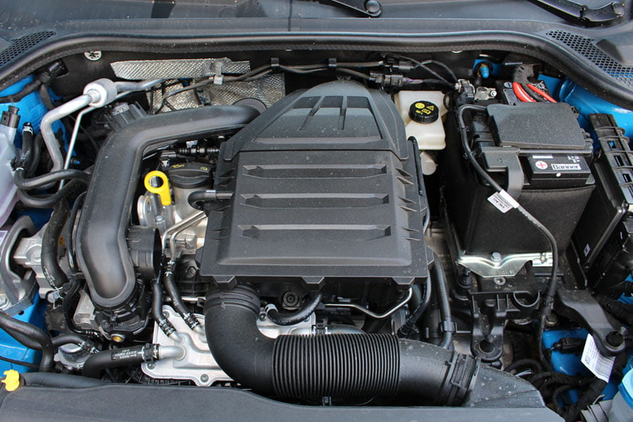 Αφού βρεις εύκολα την κατάλληλη θέση οδήγησης στο εξαιρετικό μπάκετ, μένει να εξερευνήσεις τους ισχυρισμούς των Γερμανών για την οδηγοκεντρικότητα και τον σπορ χαρακτήρα. Ο διακόπτης Drive Select στο Dynamic, λοιπόν, με το 7αρι DSG να μπαίνει στην λειτουργία Sport και το γκάζι να αποκτά πιο κοφτερή αίσθηση. Οι 116 ίπποι στις 5-5.500 σ.α.λ. και τα 200 Nm ροπής μεταξύ 2.000 και 3.500 σ.α.λ. συνδυάζονται αρμονικά με την κλιμάκωση του κιβωτίου διπλού συμπλέκτη, εξασφαλίζοντας επιτάχυνση 0-100 χλμ./ώρα στα 9,4 δλ. Ο 1.0 TFSI δεν ενοχλεί με κραδασμούς και 3κύλινδρα κροταλίσματα, απόρροια της πολύ καλής ηχομόνωσης της καμπίνας, ενώ και η ποιότητα κύλισης είναι σε αντίστοιχα επίπεδα, ιδιαίτερα αναλογιζόμενοι την διάσταση των τροχών (215/40 R18) και την σφιχτή ρύθμιση της ανάρτησης.