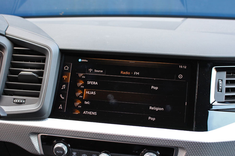 Το «οφθαλμόλουτρο» συνεχίζεται εντός, με τα μπάκετ καθίσματα και τον ψηφιακό πίνακα οργάνων να κεντρίζουν μονομιάς τα βλέμματα. Η οθόνη αφής του ΜΜΙ με την έντονη κλίση προς τον οδηγό, στην οποία μπορείς να ζωγραφίσεις τον σταθμό του ραδιοφώνου που θες να μεταβείς, και το flat-bottom τιμόνι συμπληρώνουν την οπτική πανδαισία.