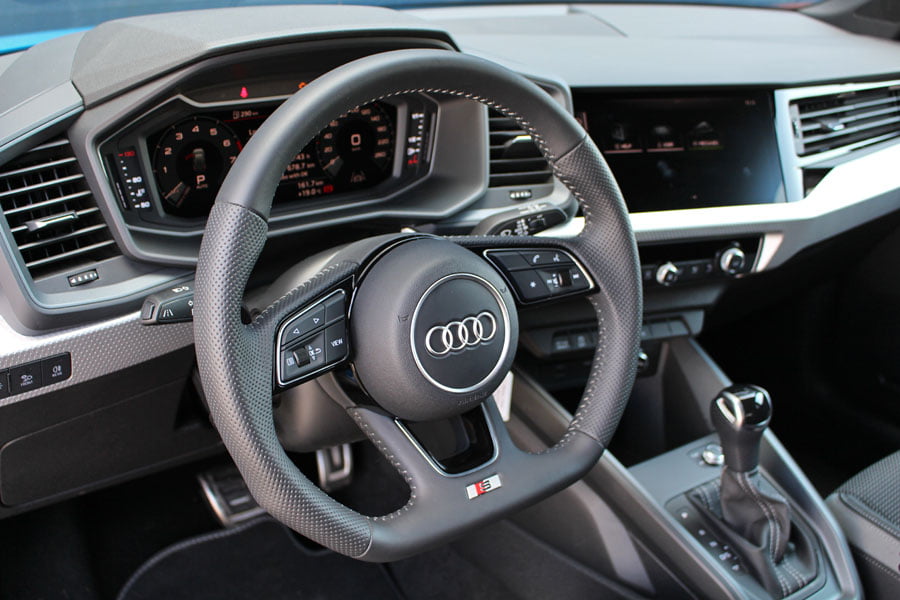 Αν ισχύει πως η πρώτη εντύπωση είναι και η σημαντικότερη για την αρχή μιας σχέσης, τότε το νέο A1 πάει κατευθείαν για… γάμο! Ειδικότερα στην έκδοση S line, με το πακέτο προφυλακτήρων, ζαντών, διχρωμίας και των φώτων ημέρας LED, τα κεφάλια δεν σταματούν να γυρνούν. Όλα τα A1 χαρακτηρίζονται από τους αεραγωγούς στην ένωση καπό-Singleframe μάσκας, μια ωδή στο Sport Quattro του 1983 – του αυτοκινήτου που αποτέλεσε τη βάση για το επικό S1, που θέρισε τον ανταγωνισμό στο Group B. Οι παραπομπές στα «πολυβόλα» της Audi δεν σταματούν στα παρελθόν, περιλαμβάνοντας το TT RS, μέσα από τις ζάντες αλουμινίου που μοιράζονται το σχέδιο με το κορυφαίο ΤΤ. Η διαμόρφωσή τους, ωστόσο, θέλει λίγο προσοχή καθώς εξέχουν ελαφρώς του ελαστικού, καθιστώντας το κατέβασμα του καθρέπτη στο παρκάρισμα επιβεβλημένο, προκειμένου να αποφευχθούν επαφές με το πεζοδρόμιο.