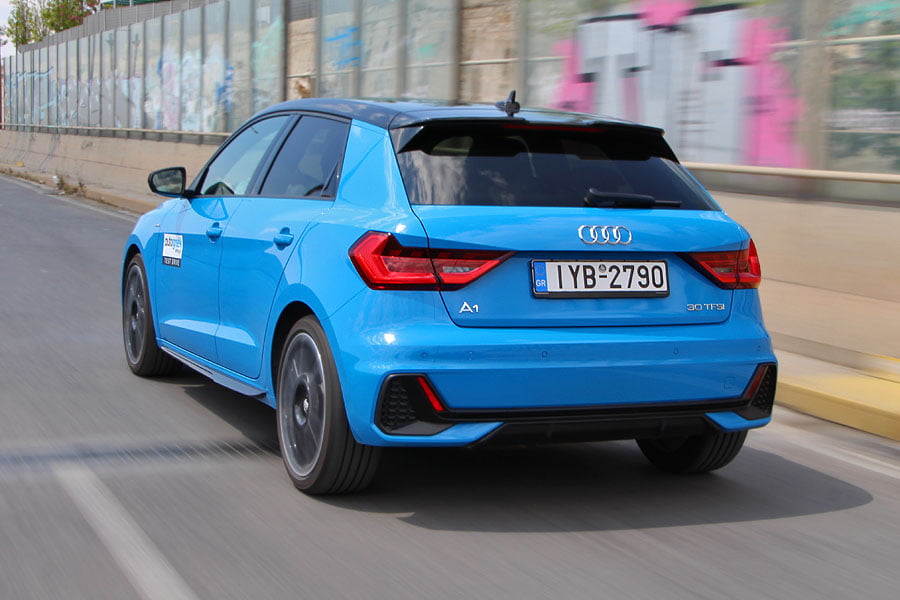 Το A1 30 TFSI διατηρεί με χαρακτηριστική ευκολία την φόρα του εντός στροφής, με το τιμόνι να προσφέρει επαρκή πληροφόρηση για τα τεκταινόμενα των εμπρός τροχών και τον συνδυασμό αμορτισέρ-ελατηρίων να ελέγχουν άκοπα τις κινήσεις του αμαξώματος. Η κλίση είναι μικρή, το εμπρός μέρος βιδωμένο στην άσφαλτο και το πίσω ακολουθεί, με μια ωραία κίνηση στην τιμονιά ή το φρενάρισμα μέχρι βαθιά στην στροφή – τουλάχιστον μέχρι να επέμβει (διακριτικά, είναι η αλήθεια) και να σου κόψει την όρεξη για περισσότερες συγκινήσεις. Γενικά, η αίσθηση που αποκομίζεις είναι ότι το πλαίσιο ζητά παραπάνω άλογα – τα 150 του 1.500αρη τούρμπο στο 35 TFSI, δηλαδή.