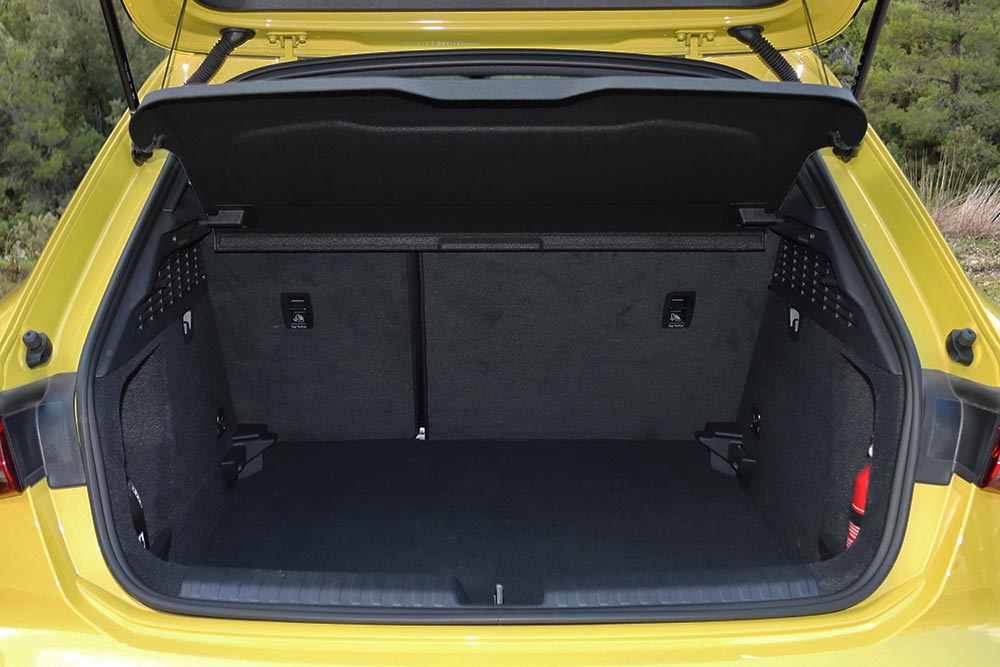 Το ταμπλό του A3 Sportback είναι πλήρως εστιασμένο στον οδηγό, ο οποίος βρίσκει εύκολα την κατάλληλη θέση. Να σημειωθεί ότι το αυτοκίνητο της δοκιμής ήταν εξοπλισμένο με το εσωτερικό «S» με σπορ καθίσματα (σχετικά σκληρά αλλά με πολύ καλή πλευρική στήριξη) σε συνδυασμό υφάσματος κόκκινης απόχρωσης με μαύρη δερματίνη και κόκκινες ραφές που του ταιριάζουν πάρα πολύ. Η οθόνη του infotainment είναι εύκολη στη χρήση και ενσωματωμένη στο ταμπλό αντί να προεξέχει και να μοιάζει παράταιρη, ενώ τα φυσικά χειριστήρια του κλιματισμού διευκολύνουν τον χρήστη, αντί να ψάχνει σε μενού-υπομενού. Από πλευράς κατασκευής του εσωτερικού ολόκληρο το ταμπλό είναι κατασκευασμένο από αφρώδες υλικό, ενώ η στιβαρή συναρμογή και το πολυτελές φινίρισμα ενισχύουν την συμπαγή και premium αίσθηση που αποπνέει το αυτοκίνητο. Αρκετά καλοί είναι οι χώροι, αφού στο πίσω κάθισμα υπάρχει αρκετός αέρας για τα πόδια και το κεφάλι. Το πορτ μπαγκάζ παρέμεινε στα 380 λίτρα και έχει πλήρως αξιοποιήσιμο τετραγωνισμένο σχήμα.