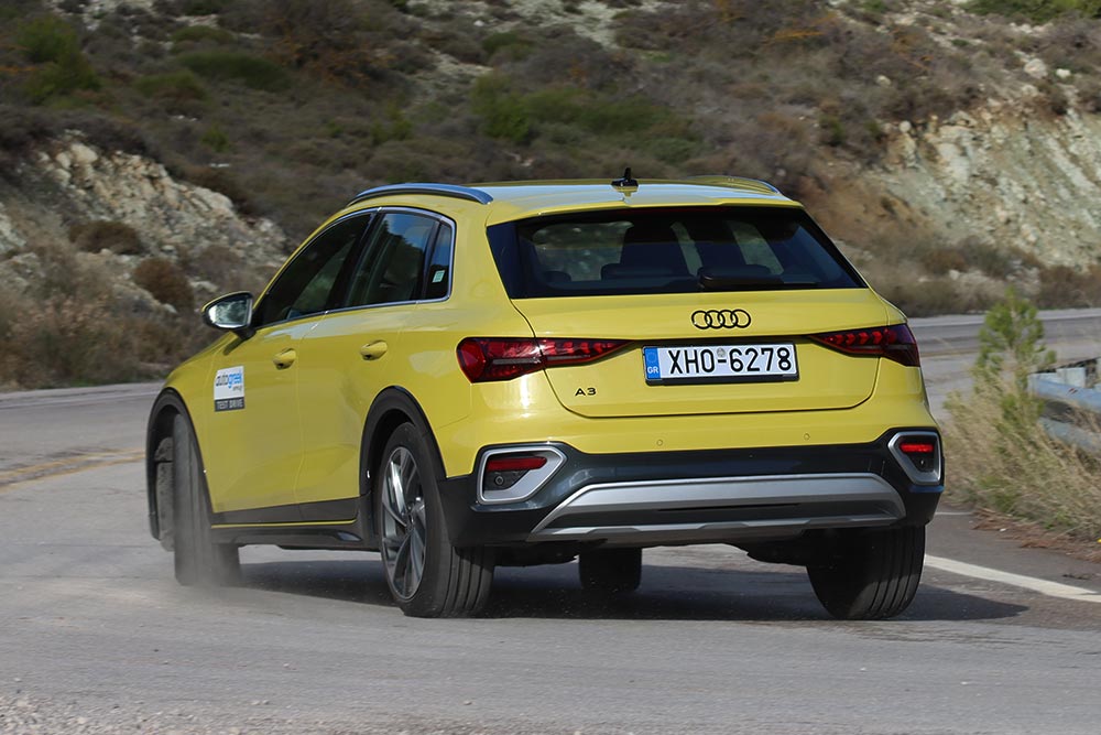 Παρόλα αυτά το στάνταρ σετάρισμα κινητήρα – κιβωτίου – τιμονιού και αναρτήσεων βρίσκεται μεταξύ Normal και Sport, καλύπτοντας τις ανάγκες τόσο της καθημερινής οδήγησης, όσο και πιο πιεσμένους ρυθμούς. Το νέο A3 allstreet γεμίζει με σιγουριά τον οδηγό του, ο οποίος είναι σε θέση να εκμεταλλευτεί πλήρως, ανά πάσα ώρα και στιγμή τα αποθέματα ισχύος του κινητήρα. Στις ευθείες κινείται με υποδειγματική σταθερότητα και καταπίνει χιλιόμετρα με γρήγορες ταχύτητες. Πολύ ισορροπημένο και με άφθονα περιθώρια πρόσφυσης παρουσιάζεται στις στροφές, όπου ακόμα και σε πολύ κλειστά κομμάτια με γεμάτο γκάζι, το Α3 allstreet εμφανίζει μικρές κλίσεις, γαντζώνει στην άσφαλτο και ακολουθεί με απόλυτη ακρίβεια την πορεία που χαράσσει ο οδηγός. Το ακριβές και άμεσο τιμόνι βοηθά με τη σειρά του, όπως και τα φρένα που αντέχουν στην παρατεταμένη χρήση. Εκεί που χάνει πόντους είναι στην άνεση, γιατί ο θόρυβος κύλισης είναι υπαρκτός, ενώ οι αναρτήσεις αντιδρούν με ξερό τρόπο κατά το πέρασμα από διάφορων «ειδών» ανωμαλιών του οδοστρώματος.