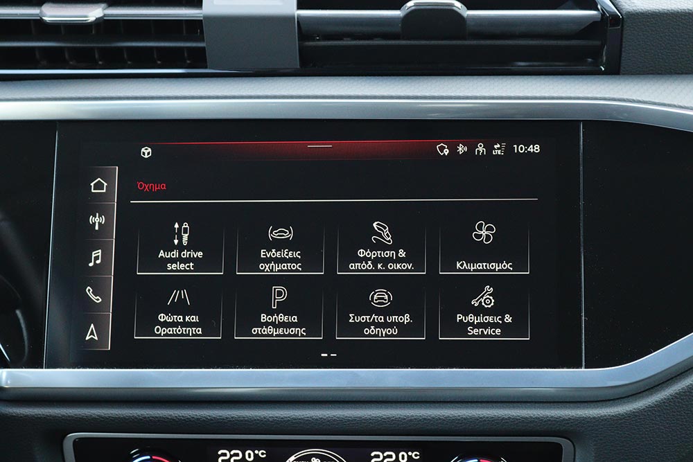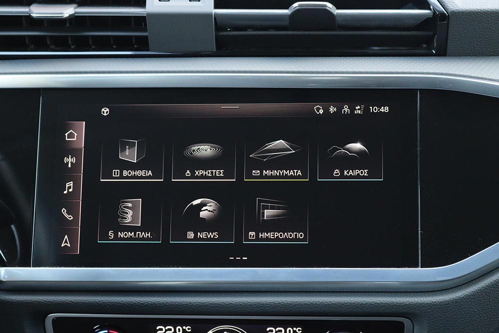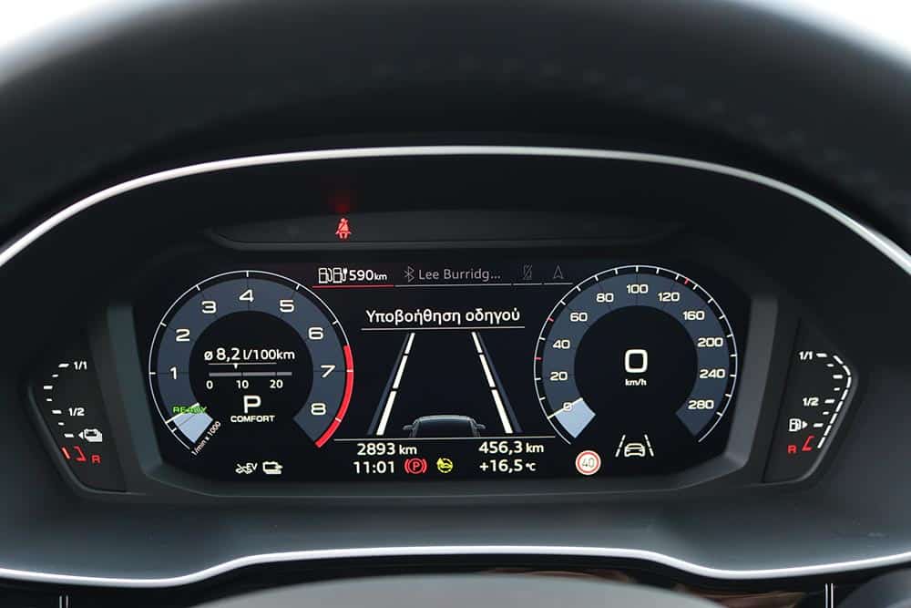 Σε επίπεδο εργονομίας δεν θα αντιμετωπίσετε το παραμικρό πρόβλημα, αφού όλα είναι εκεί που τα περιμένετε, ενώ κι ο αριθμός θηκών θα ικανοποιήσει τις απαιτήσεις σας στον τομέα της πρακτικότητας. Ο τεχνολογικά προηγμένος χαρακτήρας του αυτοκινήτου ενισχύεται από την ύπαρξη των αναπόσπαστων πλέον ψηφιακών οθονών. Ξεκινάμε με τον ψηφιακό πίνακα οργάνων Virtual Cockpit των 12,3 ιντσών (10,25 ιντσών στην αρχική έκδοση), που παρέχει όλη την πληροφόρηση που χρειάζεται ο χειριστής του Q3 45 TFSI e. Συμπληρωματικά υπάρχει κι η οθόνη για το infotainment με διαγώνιο 10,1 ιντσών. Στο λογισμικό τους έχουν προστεθεί τα απαραίτητα στοιχεία που αφορούν τη λειτουργία του υβριδικού συστήματος.