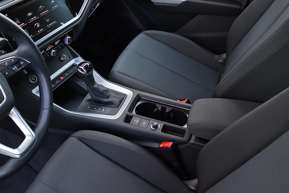 Στο πεδίο των χώρων, δεν συναντάμε σημαντικές διαφορές στην καμπίνα. Θα πρέπει να βγάλετε υποδεκάμετρο για να διαπιστώσετε πως έχει χαθεί ελάχιστος αέρας για τα κεφάλια των πίσω επιβατών, εξαιτίας της τοποθέτησης της μπαταρίας στο πάτωμα. Όμως σε καμία των περιπτώσεων αυτό δεν θα δυσκολέψει τους πίσω φιλοξενούμενους, ακόμα και αν το μπόι τους ξεπερνάει το μέσο όρο. Εκεί όμως που έχουμε σημαντική μείωση είναι στη χωρητικότητα του πορτ μπαγκάζ, λόγω των μπαταριών του υβριδικού συστήματος. Πλέον ο διαθέσιμος όγκος είναι στα 380 λίτρα, έναντι των 535 λτ. των συμβατικών Q3.