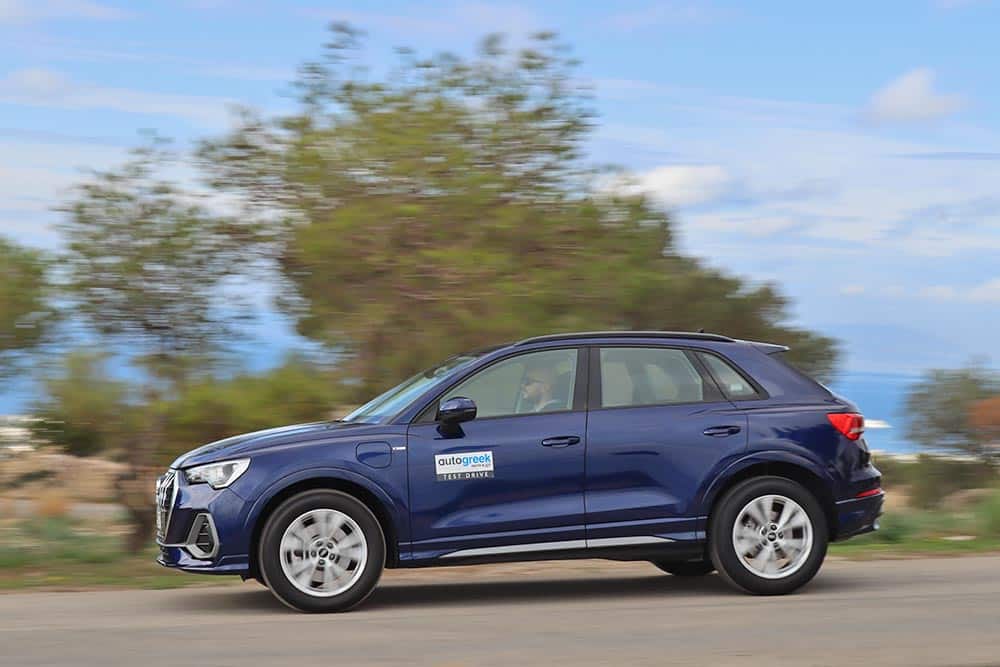 Το Audi Q3 45 TFSI e έχει ως βασικό πυλώνα του τον 1.4 ΤFSI, με ισχύ 150 ίππων, ο οποίος συνεργάζεται με ένα σύγχρονο ηλεκτροκινητήρα μόνιμου μαγνήτη (PSM) 116 ίππων. Συνολικά στο δεξί πεντάλ του οδηγού είναι διαθέσιμα 245 άλογα και 400 Nm ροπής, με τη δύναμη αυτή να καταλήγει στον εμπρόσθιο άξονα μέσω του S tronic κιβωτίου διπλού συμπλέκτη 6 σχέσεων. Το PHEV Q3 των 1.815 κιλών επιταχύνει στο 0-100 χλμ./ώρα σε 7,3 δλ., και η τελική ταχύτητα αγγίζει τα 210 χλμ./ώρα. Το μεγάλο όμως πλεονέκτημα είναι η μέση εργοστασιακή κατανάλωση καυσίμου της τάξεως των 1,6 λτ./100 χλμ. (στην πράξη δεν ξεπερνάει τα 5,5 λτ./100 χλμ.) και οι εκπομπές CO2 των 36 γρ./χλμ. Γεγονός που εξασφαλίζει μηδενικά τέλη κυκλοφορίας και πάσο ελευθέρας για το δακτύλιο!