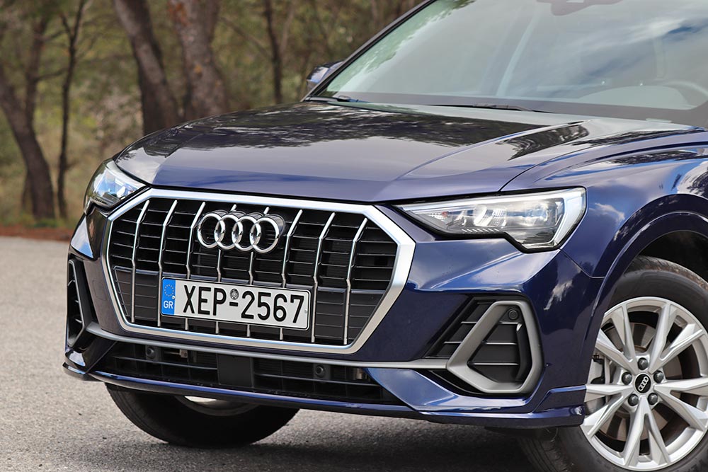 Το διττό χαρακτήρα του συγκεκριμένου Audi Q3 δεν τον προδίδει σχεδόν τίποτε! Μόνο οι παρατηρητικοί θα δείτε τη θύρα φόρτισης της μπαταρίας στο εμπρός αριστερό φτερό, καθώς και το λογότυπο 45 TFSI e στην πόρτα του χώρου αποσκευών. Μια ακόμα διαφορά εντοπίζεται στην αυξημένη απόσταση από το έδαφος, αφού το Q3 45 TFSI e έχει ψηλώσει κατά 10 χλστ., λόγω της τοποθέτησης της μπαταρίας. Από εκεί κι έπειτα, σε επίπεδο σχεδιασμού, το σύνολο είναι καλαίσθητο, αποπνέοντας παράλληλα την πολυτέλεια που θέλει η Audi για τα μοντέλα της.