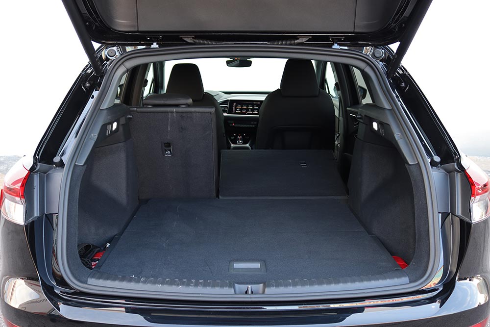 Ένα μεγάλο πλεονέκτημα που προσφέρει το νέο Q4 e-tron είναι η άνεση της καμπίνας του, αφού είναι σε φιλοξενήσει με ευκολία έως 5 ενήλικους επιβάτες. Σε αυτό διευκολύνει το επίπεδο πάτωμα, καθώς δεν θα δυσκολέψει όποιον κάτσει στη μέση. Παράλληλα, η πρόσβαση στις πίσω θέσεις είναι εύκολη, χάρη στο μεγάλο άνοιγμα των πίσω θυρών. Ο χώρος αποσκευών του Audi Q4 e-tron βρίσκεται στα 520 λτ. (τα «αδερφάκια» του Skoda Enyaq και VW ID.4 προσφέρουν 585 και 543 λτ. αντίστοιχα) και ικανοποιεί με το πλήρως εκμεταλλεύσιμο σχήμα του, ενώ κάτω από το δάπεδο υπάρχει και ειδική θέση για τα καλώδια φόρτισης.