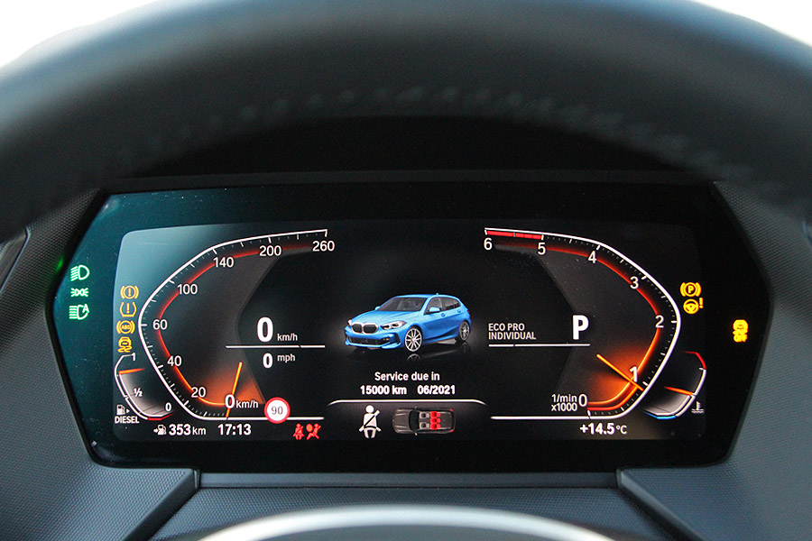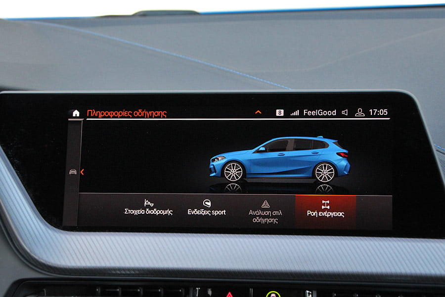 Το εσωτερικό της νέας BMW Σειρά 1 είναι και αυτό πλήρως αναβαθμισμένο και διαθέτει στοιχεία που προέρχονται απευθείας από τις μεγαλύτερες BMW. Το ταμπλό και πολλές επιμέρους επιφάνειες καλύπτονται από παχιά αφρώδη υλικά, ενώ το φινίρισμα και η συναρμογή βρίσκονται στα γνωστά κορυφαία επίπεδα. Ο οδηγός θα βρει εύκολα την κατάλληλη θέση και δεν θα δυσκολευτεί με τις λειτουργίες των διαφόρων διακοπτών. Η εξτρά οθόνη των 10,25 ιντσών του συστήματος πολυμέσων (συνοδεύεται με αντίστοιχης διάστασης ψηφιακό πίνακα οργάνων) ελέγχεται με την αφή ή μέσω του εύχρηστου περιστροφικού χειριστηρίων και των πλήκτρων δίπλα από το λεβιέ των ταχυτήτων. Ενδεχομένως κάποιους να τους ξενίσει η πολύ μικρή και λιτή οθόνη των ενδείξεων του κλιματισμού.