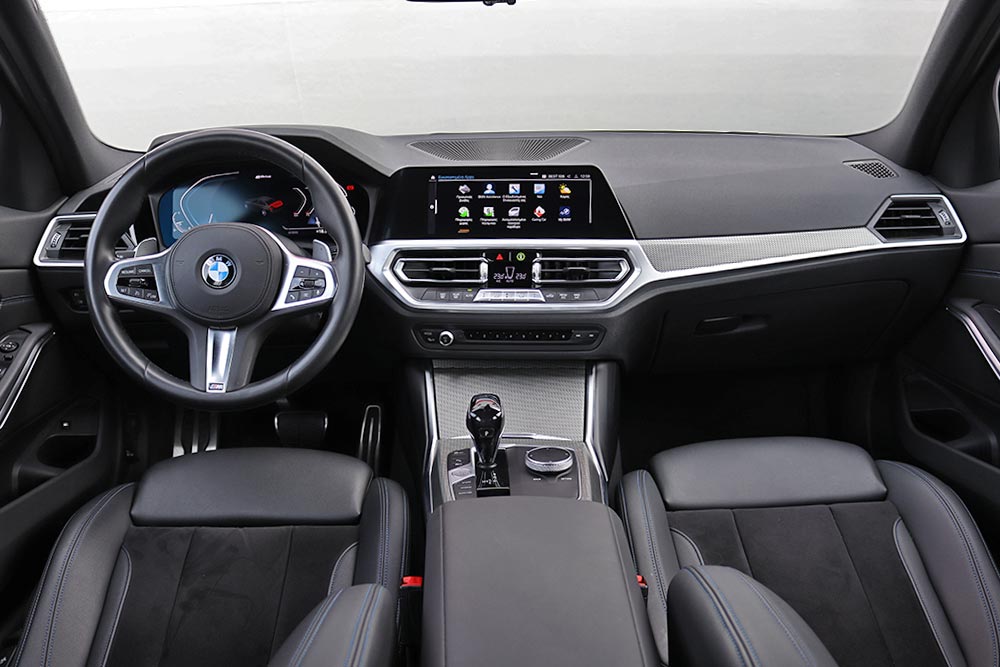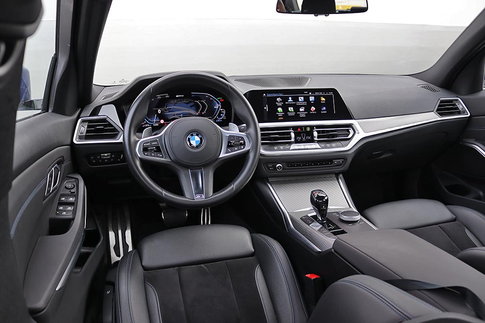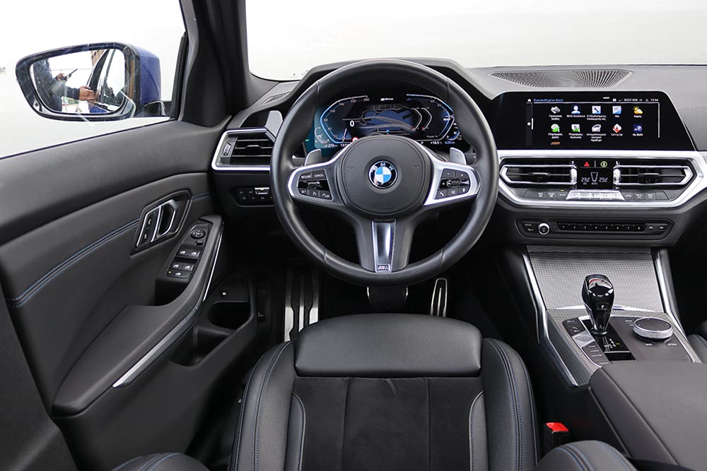 Τα παραπάνω ο κάτοχος της BMW 330e τα απολαμβάνει μέσα από μια ποιοτική, εργονομική κι άκρως πολυτελή καμπίνα. Αρχικά κάθεται εξαιρετικά, με τη θέση οδήγησης να ρυθμίζεται ποικιλοτρόπως διευκολύνοντας κάθε σωματότυπο. Μόλις ο οδηγός βρει τη θέση που τον βολεύει, έχει μπροστά του δύο ευανάγνωστες οθόνες, μια για το ψηφιακό πίνακα οργάνων με διαγώνιο 12,3 ιντσών, ενώ για το infotainment υπάρχει οθόνη 10,25 ιντσών. Το επίπεδο κατασκευής και συναρμογής είναι εξίσου υψηλό, όπως δηλαδή αρμόζει σε μια premium κατασκευή της BMW. Από εκεί κι έπειτα ο τεχνολογικά προηγμένος χαρακτήρας της 330e τονίζεται και από τις πινελιές στην καμπίνα, όπως για παράδειγμα οι φωνητικές εντολές, το χειριστήριο αφής για το σύστημα iDrive και πολλά ακόμα. Οι επιβάτες θα βολευτούν άνετα και χωρίς παραχωρήσεις, μιας κι οι διαθέσιμοι χώροι είναι όπως και στη συμβατική Σειρά 3. Η αλλαγή όπως αναφέραμε και προηγουμένως έγκειται στο χώρο αποσκευών που έχει μειωθεί στα 375 λτ. λόγω της μπαταρίας, αντί για τα 480 λτ. που είναι κανονικά.
