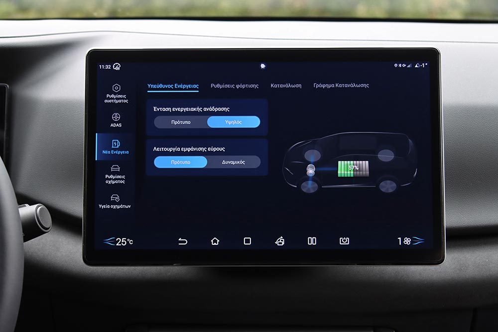 Καταλληλότερο πρόγραμμα για τις περισσότερες διαδρομές είναι το Normal, αφού συνδυάζει ιδανικά τις επιδόσεις με την κατανάλωση. Εμείς μετρήσαμε σε μεικτές συνθήκες 15,7 kWh/100 χλμ., δηλαδή ελάχιστα πιο κάτω από τις 16 kWh/100 χλμ. που ανακοινώνει η BYD. Στην πόλη μπορεί να βρεθεί κοντά στις 10 kWh/100 χλμ., όμως στον αυτοκινητόδρομο και σε πιο γρήγορους ρυθμούς γενικότερα φτάνει ή ξεπερνά τις 20 kWh/100 χλμ. Η αυτονομία σε συνδυαστική χρήση βρίσκεται κοντά στα 310 χλμ. με μία πλήρη φόρτιση η οποία διαρκεί 5,5 ώρες σε φορτιστή AC 11kW. Με δυνατότητα φόρτισης DC 65kW αρκούν 37 λεπτά για το 10% στο 80%, ενώ πολύ σημαντικό είναι ότι ενσωματώνει και λειτουργία Vehicle-to-Load (V2L) με ισχύ έως 3,3 kW για εξωτερική φόρτιση διαφόρων συσκευών. Αργότερα εντός του 2025 θα υπάρξει έκδοση με μεγαλύτερη μπαταρία και ισχυρότερο κινητήρα, προσφέροντας εργοστασιακή μεικτή αυτονομία περίπου 420 χιλιομέτρων.