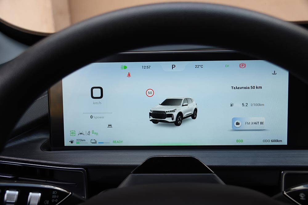 Το ζητούμενο στην περίπτωση του Chery Tiggo 4 δεν είναι ούτε οι επιδόσεις, ούτε οι αγωνιστικές ανησυχίες, αλλά ένας συνδυασμός άνεσης, ευκολίας χρήσης, μέγιστης οικονομίας αλλά κυρίως μιας άκρως value for money επιλογής. Και σε όλα τα παραπάνω τα καταφέρνει με μεγάλη επιτυχία. Στην εβδομάδα που το είχαμε στα χέρια μας διανύσαμε συνολικά 500 χιλιόμετρα στην πόλη, εκτός αυτής και στην εθνική οδό και μείναμε απόλυτα ικανοποιημένοι. Στις στροφές οι κλίσεις του αμαξώματος είναι λογικές, δεδομένου του προσανατολισμού του μοντέλου. Από τα μοναδικά 2 προγράμματα οδήγησης που έχει ο οδηγός στη διάθεση του, Eco και Sport, το δεύτερο επιλέχθηκε μόνο στην περίπτωση μιας γρήγορης προσπέρασης και σε κάποια ανηφορικά επαρχιακά κομμάτια. Μόνο με το γκάζι στο πάτωμα, και όταν ανεβαίνουν οι στροφές, ο βενζινοκινητήρας που αναλαμβάνει δυναμική δράση, ακούγεται κάπως έντονα θυμίζοντας CVT συμπεριφορές. Σε όλες τις υπόλοιπες περιπτώσεις το Tiggo 4 είναι ιδιαίτερα αθόρυβο και πολιτισμένο αφού κινείται ως επί το πλείστον ηλεκτρικά ή με μικρή και αόρατη συμβολή του θερμικού συνόλου. Στον τομέα της ανάρτησης, αυτή, με γόνατα ΜακΦέρσον εμπρός και ημιάκαμπτο άξονα πίσω, απορροφά επαρκώς λακκούβες και κακοτεχνίες αν και είναι ένα τσικ πιο σφιχτή απ’ ότι θα θέλαμε. Τα φρένα αποτελούμενα από δίσκους παντού (αεριζόμενοι εμπρός) είναι αποτελεσματικά με καλή αίσθηση στο πεντάλ. Το τιμόνι παρέχει ικανοποιητική πληροφόρηση αλλά τεχνητή, ενώ το βάρος του του μπορεί να ρυθμιστεί μέσα από το μενού για μεγαλύτερη άνεση μέσα στην πόλη.