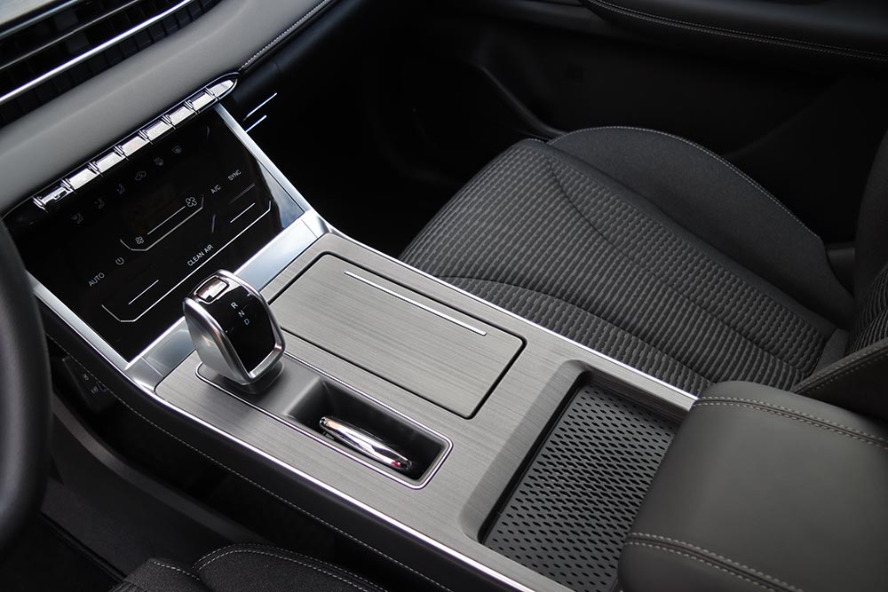 Ανοίγοντας την πόρτα της καμπίνας, η αίσθηση που αποπνέει είναι αυτή της ευρυχωρίας, της άνεσης και των πολύ καλής ποιότητας υλικών με προσοχή στη λεπτομέρεια να παραπέμπουν σε premium μοντέλα μεγαλύτερης κατηγορίας. Συναντάμε μαλακά πλαστικά στην υφή με ραφές που δίνουν μια νότα πολυτελείας, ενώ τα σκληρά έχουν πολύ ικανοποιητική συναρμογή με απουσία τριγμών. Ευτυχώς αρκετοί φυσικοί διακόπτες όπως για τα οδηγικά προφίλ, το ραδιόφωνο και την ένταση και άλλα μας κάνουν τη ζωή λίγο πιο εύκολη. Τα του κλιματισμού πάντως είναι όλα απτικής αφής.