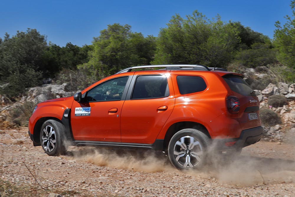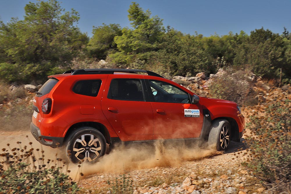 Το Duster 1.5 Blue dCi 4×4 θα το πάρει κανείς για να πηγαίνει και εκτός δρόμου, όπου το αυτοκίνητο εντυπωσιάζει με τις δυνατότητές του. Πέρα από την ύπαρξη της τετρακίνησης, διαθέτει ανεξάρτητη πίσω ανάρτηση (ημιάκαμπτος άξονας στα 2WD) και ελαστικά μεικτής χρήσης (M+S). Η ρύθμιση των αναρτήσεων με τις αυξημένες διαδρομές και η απόσταση από το έδαφος των 214 χιλιοστών, καθιστούν ιδανικό το Duster για την κίνηση και εντός ασφάλτου με τις μύριες λακκούβες και μπαλώματα. Θα λέγαμε ότι είναι η πλέον κατάλληλη για τους ελληνικούς δρόμους, αφού περνά τις όποιες ανωμαλίες χωρίς να ενοχλούνται οι επιβάτες, αλλά και να φοβάται ο οδηγός μη τυχόν «πληγωθεί» το αυτοκίνητο.