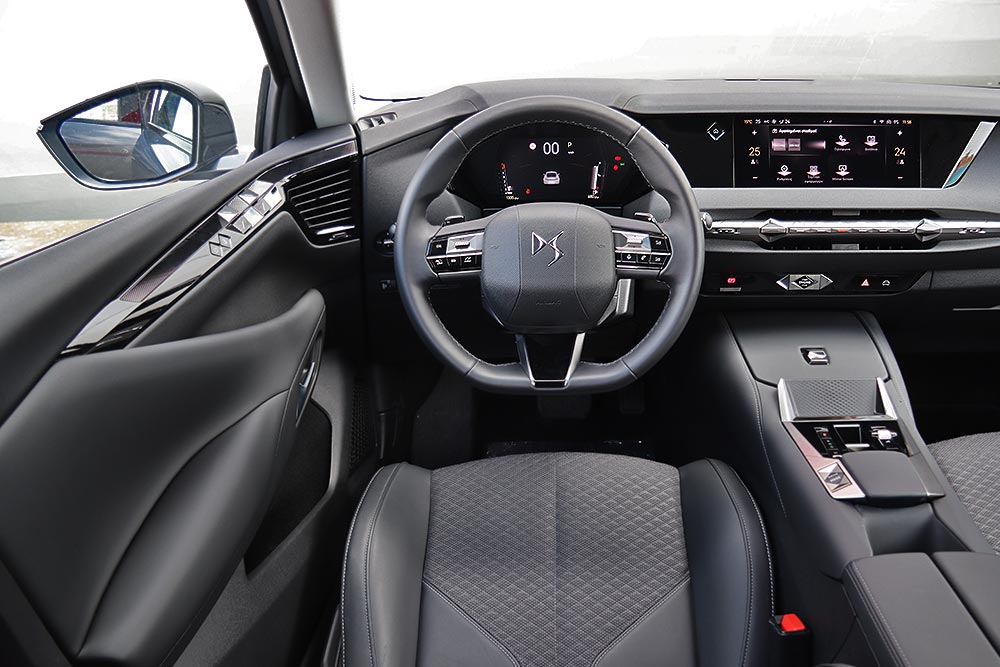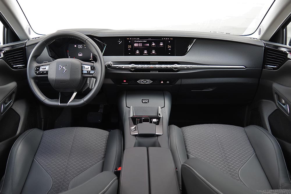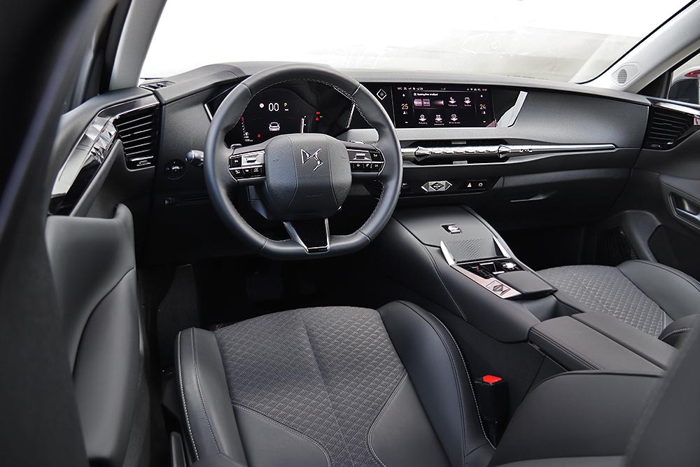Το εσωτερικό του DS 4 ακολουθεί πιο μινιμάλ σχεδιασμό με τις απαλές διαδοχικές καμπύλες και τις καθαρές γραμμές γενικότερα. Την προσοχή στην ποιότητα τονίζουν τα μαλακά υλικά στο άνω τμήμα του ταμπλό (όχι όμως και στη μεγάλη μπροστινή επιφάνεια), στο πάνω μέρος όλων των θυρών και στην κεντρική κονσόλα. Η συναρμογή και το φινίρισμα είναι και αυτά με τη σειρά τους προσεγμένα, όπως και οι επενδύσεις των αναπαυτικών και με πολύ καλή πλευρική στήριξη καθισμάτων.