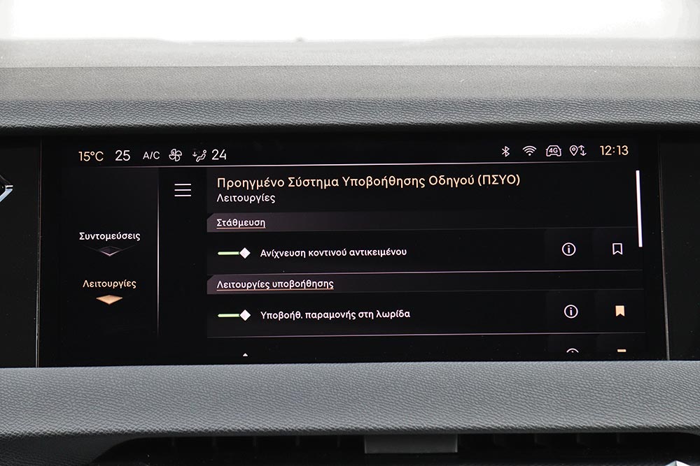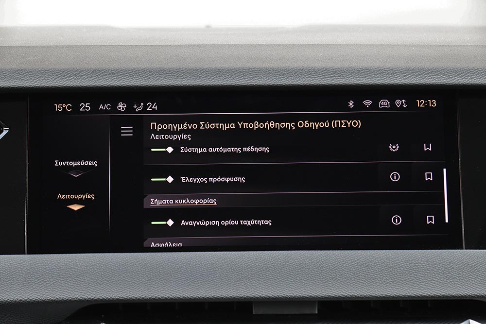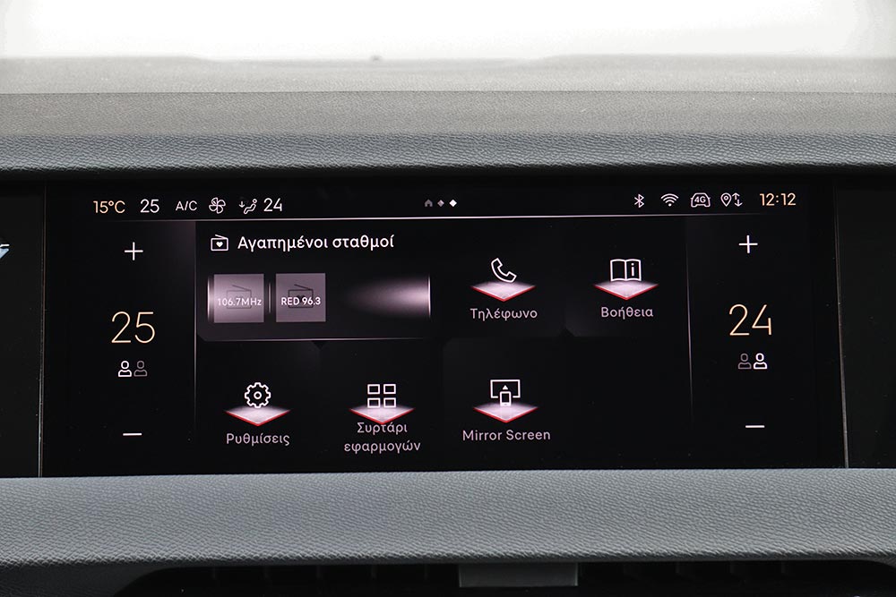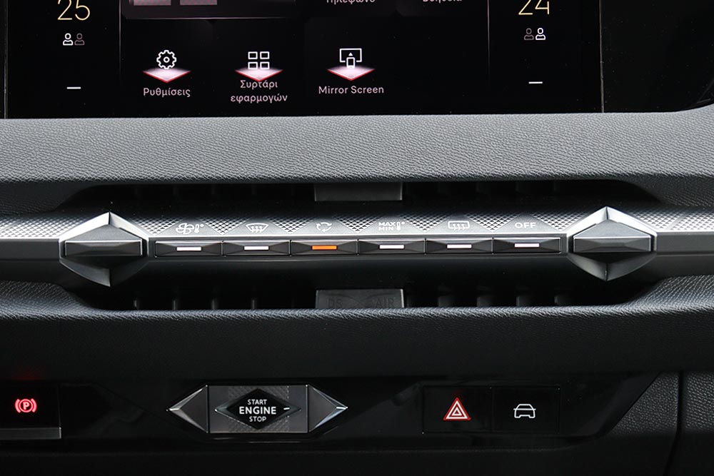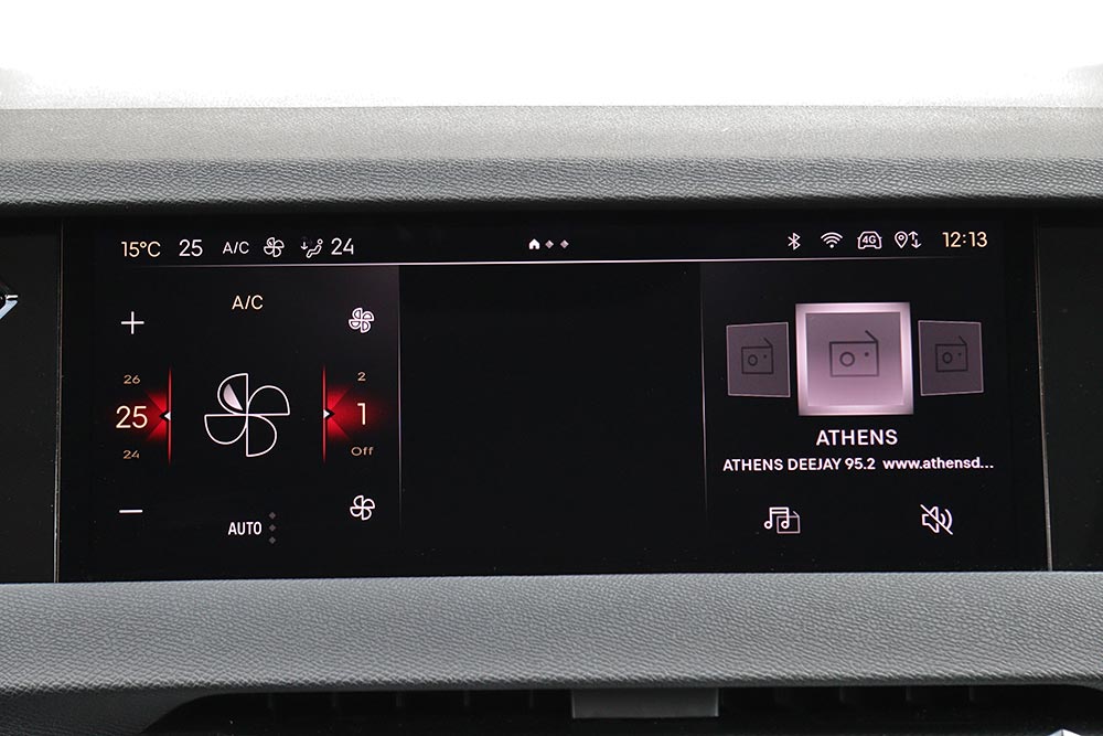 Μπροστά από τον οδηγό υπάρχει η μικρή και πολύ λιτή οθόνη του ψηφιακού πίνακα οργάνων των 7 ιντσών, ενώ στο κέντρο του ταμπλό ενσωματώνεται κομψά η οθόνη αφής των 10 ιντσών. Ο χειρισμός της δεν είναι και ο πιο εύκολος, παρόλο που τα χειριστήρια για τον έλεγχο του κλιματισμού βρίσκονται πιο κάτω. Εργονομικό «φάουλ» αποτελούν οι πολύ ψηλά τοποθετημένοι διακόπτες για τα ηλεκτρικά παράθυρα, όπως και η χαμηλή θέση των χειρολαβών για το άνοιγμα των θυρών. Αντίστοιχα και οι μικροί διακόπτες για τον έλεγχο του αυτόματου κιβωτίου ταχυτήτων, δεν είναι και οι πιο πρακτικοί. Ασυνήθιστο σχεδιασμό έχουν και οι αεραγωγοί, όπως είναι οι μικροί στο κέντρο και οι μεγαλύτεροι στις πόρτες. Αρνητικό στοιχείο για τον οδηγό αποτελεί η μέτρια ορατότητα προς τα πίσω, γιατί περιορίζεται από τις φαρδιές κολόνες «C» και από το παρμπρίζ με την έντονη κλίση. Όσον αφορά τους χώρους, στο πίσω κάθισμα θα φιλοξενηθούν με ικανοποιητικές ανέσεις δύο ενήλικα άτομα κανονικού αναστήματος ή και ένας ακόμα χωρίς πολύ στρίμωγμα, χάρη και στο χαμηλό κεντρικό τούνελ. Μεγάλο για τα δεδομένα της μικρομεσαίας κατηγορίας είναι το πορτ μπαγκάζ των 430 λίτρων, με το ψηλό όμως κατώφλι φόρτωσης.