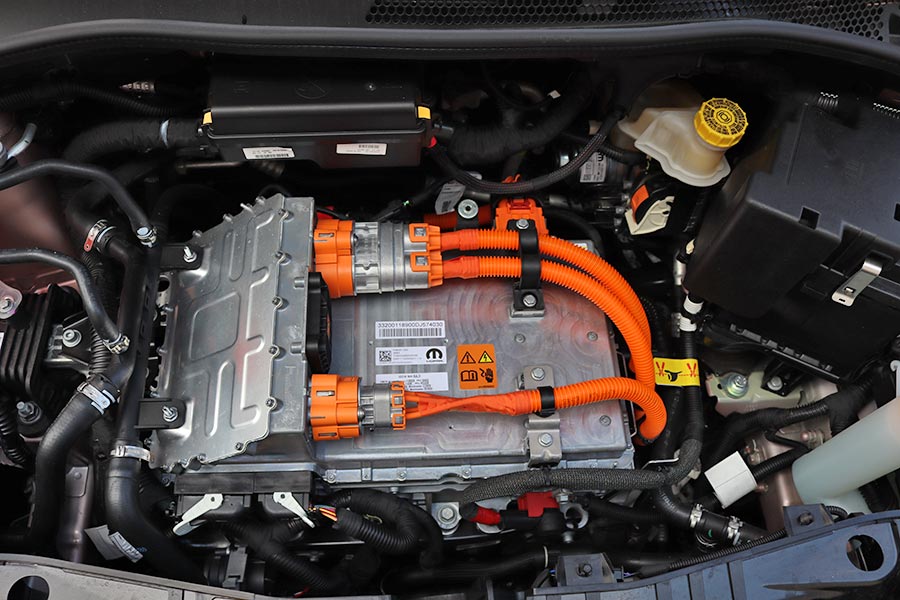 Ο μπροστά τοποθετημένος ηλεκτροκινητήρας του 500, αποδίδει 118 ίππους και 220 Nm ροπής. Η μετάδοση γίνεται στους εμπρός τροχούς μέσω ενός αυτόματου κιβωτίου 1 σχέσης, με το 0-100 χλμ./ώρα να επιτυγχάνεται σε 9 δευτερόλεπτα και την τελική ταχύτητα να σταματά ηλεκτρονικά στα 150 χλμ./ώρα. Σύμφωνα με την Fiat, η μεικτή κατανάλωση είναι 14,6 kWh/100 χλμ. και η αυτονομία είναι 303 χλμ. σε μεικτές συνθήκες ή 437 χλμ. σε αστικές. Στη δοκιμή η μεικτή κατανάλωση βρέθηκε στις 16,7 kWh/100 χλμ., που σημαίνει ότι με την μπαταρία ιόντων λιθίου των 42,0 kWh η αυτονομία σε πραγματικές συνθήκες κυμαίνεται γύρω στα 250 χιλιόμετρα. Μια πλήρης φόρτιση διαρκεί 15 ώρες και 5 λεπτά σε οικιακή πρίζα σούκο AC 2,3 kW ή 4 ώρες και 15 λεπτά σε AC 11 kW. Σε 35 λεπτά μπορεί να φορτίσει από 0-80% σε ταχυφορτιστή DC 85 kW ή σε 5 λεπτά εξασφαλίζονται περίπου 50 χιλιόμετρα.