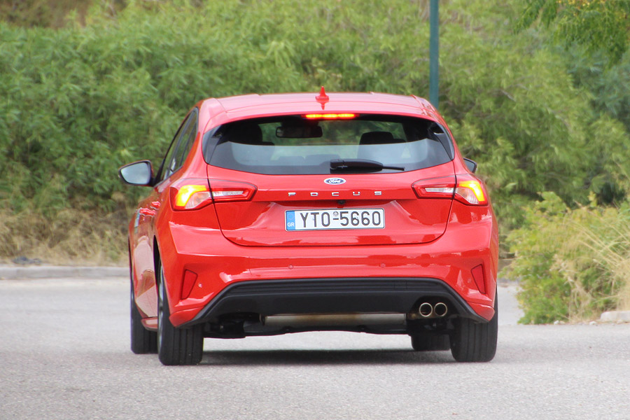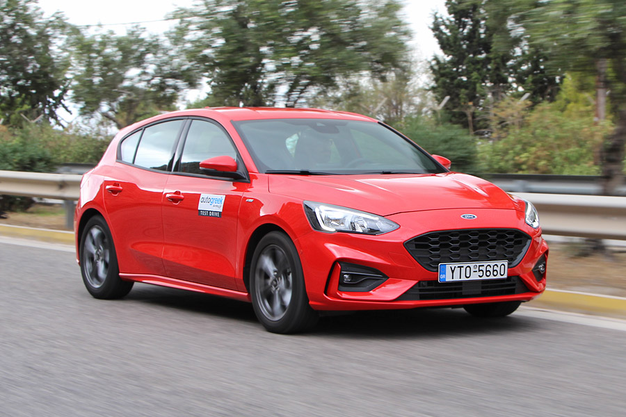 Επιπλέον, το Focus ST-Line είναι χαμηλότερο κατά 10 χλστ. και διαθέτει σπορ ανάρτηση με διαφορετικά ελατήρια, αμορτισέρ και αντιστρεπτικές δοκούς. Στον στάνταρ εξοπλισμό περιλαμβάνεται και το Drive Mode με τα προφίλ οδήγησης Normal, Sport και Eco, προσαρμόζοντας ανάλογα την απόκριση του γκαζιού, του συστήματος διεύθυνσης και την σκληρότητα της ανάρτησης. Σε κάθε περίπτωση το Focus ST-Line παρουσιάζεται εξαιρετικά σταθερό στις ευθείες ανεξαρτήτως ταχύτητας και με υψηλά περιθώρια πρόσφυσης στις στροφές. Εκεί ακόμα και υπό πίεση το αμάξωμα παρουσιάζει μικρές κλίσεις, ενώ αντιδρά ως ένα ενιαίο άκαμπτο σύνολο και ακολουθεί πιστά και με ακρίβεια τις εντολές του οδηγού, ο οποίος έχει στη διάθεσή του ένα ακριβές και σωστά ζυγισμένο τιμόνι. Από την άλλη πλευρά το αντίτιμο είναι η μειωμένη άνεση της άνεσης κατά τη διέλευση του αυτοκινήτου πάνω από ανωμαλίες των δρόμων, αν και στο ταξίδι είναι ξεκούραστο και με χαμηλό θόρυβο, χάρη και στη βελτιωμένη ηχομόνωση.
