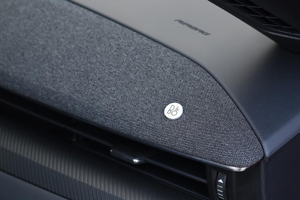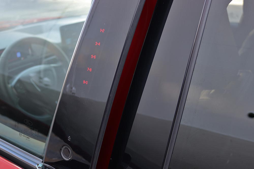 Ακόμα ένα τεχνολογικό τρικ της Mustang είναι η απουσία των κλασικών εξωτερικών χειρολαβών. Για να ανοίξουν οι πόρτες απαιτείται απλά το πάτημα ενός κουμπιού που βρίσκεται στην κολόνα του αμαξώματος. Επίσης με τη λειτουργία Phone As A Key ο οδηγός μπορεί να χρησιμοποιήσει το smartphone του για να ξεκλειδώσουν οι πόρτες ή να εκκινήσει τη Mustang δίχως την χρήση κλειδιού ή να βγει το κινητό από την τσέπη. Ακόμα κι αν το τελευταίο έχει κλείσει από αποφορτισμένη μπαταρία, τότε στη μεσαία κολόνα εμφανίζεται ένα αριθμητικό πληκτρολόγιο για να βάλετε το PΙΝ σας. Σε ότι αφορά την κατασκευή της καμπίνας, τα μαλακά υλικά στις πόρτες και στο κεντρικό πλατύ υποβραχιόνιο χαρίζουν μια premium ατμόσφαιρα. Ωστόσο θα θέλαμε με ανάλογο υλικό να είναι επενδυμένο και το ταμπλό, αντί του σκληρού πλαστικού.