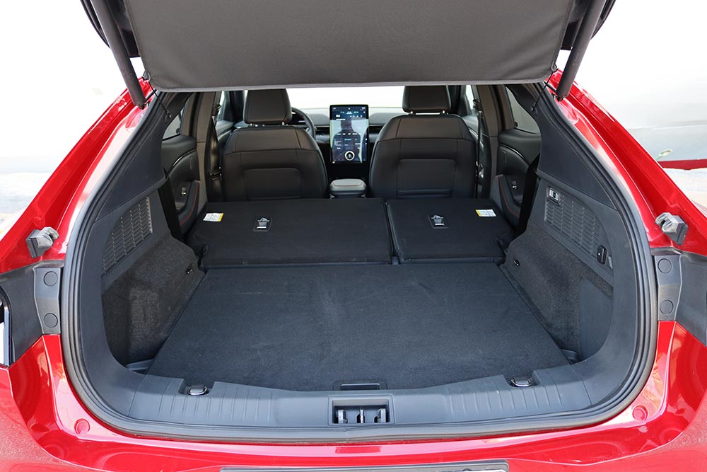 Σε πολύ καλό επίπεδο βρίσκονται κι οι χώροι επιβατών, αφού ανεξαρτήτως σωματότυπου θα βολευτούν με άνεση, απολαμβάνοντας αρκετό χώρο για το κεφάλι, αλλά και τα πόδια τους. Επίσης, το τελείως επίπεδο δάπεδο διευκολύνει τη μετακίνηση ενός ατόμου στη μέση του πίσω καθίσματος. Για τις αποσκευές υπάρχουν διαθέσιμα 402 λίτρα, καθώς επίσης και 100 λίτρα χώρου κάτω από το εμπρόσθιο καπό (το Frunk όπως το ονομάζει η Ford, είναι εμπνευσμένο από το Megabox του Puma), που μπορεί να φιλοξενήσει ένα μέρος των αποσκευών σας! Ο χώρος αυτός είναι πλήρως αδιάβροχος, διαθέτοντας σύστημα αποστράγγισης!