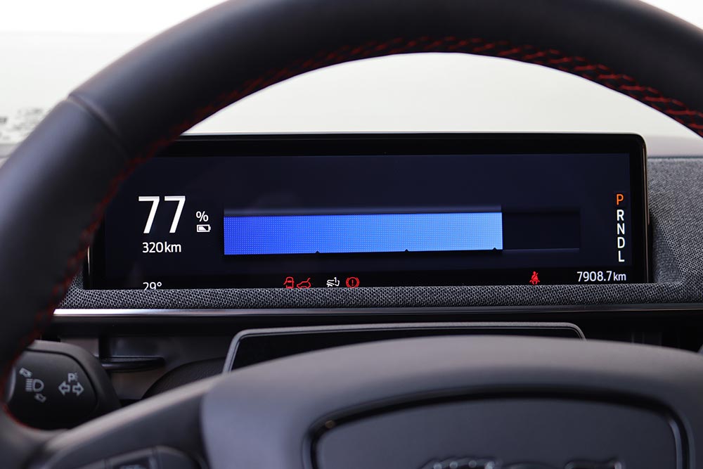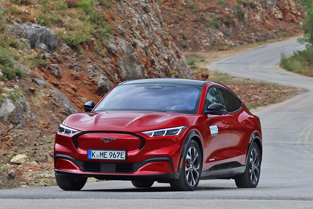 Το εθνικό δίκτυο δεν αποτελεί πρόβλημα για τη Mustang Mach-E αφού ο ρυθμός επιτάχυνσης είναι καταιγιστικός, ενθουσιάζοντας τον χειριστή της. Εκεί που η Mach-E σε αφήνει με το στόμα ανοιχτό, είναι όταν ξεκινήσουν οι στροφές, μιας και το ηλεκτρικό SUV της Mustang στέκεται αριστοτεχνικά σε κάθε φιδίσια διαδρομή, με το πλέον εντυπωσιακό στοιχείο να είναι το πόσο καλά κρύβεται το βάρος των 2.182 κιλών του αμαξώματος, με την ανάρτηση να το διαχειρίζεται εξαιρετικά. Οι κλίσεις είναι μικρές, η πρόσφυση είναι άφθονη, ενώ υπό καθεστώς έντονης πίεσης θα σας ενθουσιάσει ο τρόπος που το πίσω μέρος ανοίγει την τροχιά του (ειδικά στο πρόγραμμα Untamed), ίσα, ίσα για να σας τοποθετήσει σωστά στην στροφή. Κι αν επιμείνετε στο γκάζι θα εκπλαγείτε από το πως το εμπρός μέρος θα σας τραβήξει προς την έξοδο! Συμπεριφορά που σίγουρα δεν θα την περιμένατε από ένα ηλεκτρικό αυτοκίνητο! Σε όλα αυτά ο οδηγός έχει μια σημαντική βοήθεια κι από το σύστημα διεύθυνσης που έχει καλή πληροφόρηση, με τα φρένα να έχουν πολύ καλή απόδοση, ενώ εξαιρετική είναι και η αίσθηση του πεντάλ, που είναι κλάσεις ανώτερη από τα περισσότερα ηλεκτρικά της αγοράς.