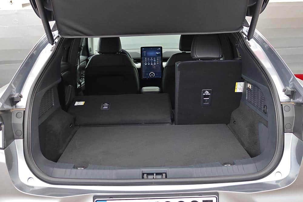 Η Mustang Mach-E είναι γενναιόδωρη σε ότι αφορά τους χώρους επιβατών. Πέντε άτομα θα βολευτούν με άνεση, απολαμβάνοντας αρκετό χώρο για το κεφάλι και τα πόδια τους, κάτι που διευκολύνει σημαντικά το τελείως επίπεδο δάπεδο. Για τις αποσκευές υπάρχουν διαθέσιμα 402 λίτρα, καθώς επίσης και 100 λίτρα χώρου κάτω από το εμπρόσθιο καπό (εμπνευσμένο από το Megabox του Puma). Ο χώρος αυτός είναι πλήρως αδιάβροχος και με σύστημα αποστράγγισης!