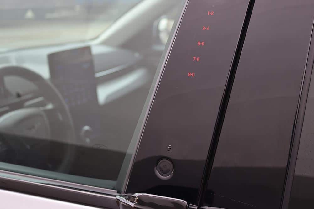 Πριν μπείτε στη Mustang MachE, θα ψάχνετε για τις κλασικές χειρολαβές, οι οποίες όπως προαναφέραμε, λάμπουν δια της απουσίας τους και έχουν αντικατασταθεί από κουμπιά. Έπειτα θα αναρωτηθείτε τι είναι η συστοιχία αριθμών στην κολώνα της πόρτας του οδηγού. Όλα αυτά επιτρέπουν την είσοδο στη Mustang! Αρχικά έχοντας το κλειδί στην τσέπη σας και πατώντας το κουμπί αφής η πόρτα ανοίγει για μερικά εκατοστά μέχρι να πιάσεις την καλαίσθητη προεξοχή και να μπεις στην φουτουριστική καμπίνα. Από την άλλη οι φωτιζόμενοι αριθμοί αποτελούν μέρος της τεχνολογίας Phone As A Key (δείτε εδώ ακριβώς τι κάνει).