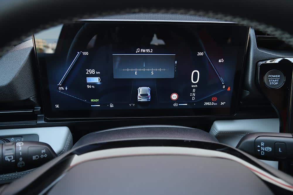 Από πλευράς ποιότητας, τα σκληρά πλαστικά που έχουν χρησιμοποιηθεί είναι συμπαγή και γεροδεμένα, ενώ τα μαλακά ανοιχτόχρωμα με τις ραφές στο ταμπλό και στις εμπρός πόρτες αναβαθμίζουν τη συνολική εικόνα. Τα καθίσματα παρέχουν καλή πλευρική στήριξη και είναι σχεδιασμένα ώστε να προσφέρουν άνεση σε πολύωρες διαδρομές. Ο οδηγός απολαμβάνει σωστή εργονομία, με εύκολη πρόσβαση στα χειριστήρια και αρκετές θέσεις για μικροαντικείμενα, ωστόσο το τιμόνι των δύο ακτινών έχει μεγάλη διάμετρο και δείχνει σχετικά παράταιρο. Σημαντικό πλεονέκτημα στη διατήρηση της πρακτικότητας προσφέρει το μεγάλο πορτμπαγκάζ των 523 λίτρων, εκ των οποίων τα 145 λίτρα αφορούν στο GigaBox, τη θέση δηλαδή του εφεδρικού τροχού κάτω από το παραδοσιακό πορτμπαγκάζ. Και τέλος το Frunk που προσθέτει άλλα 42 λίτρα. Οι χώροι για τους πίσω επιβάτες είναι επαρκείς αλλά όχι για τους πιο ψηλούς, με καλή στήριξη και επαρκή αέρα για το κεφάλι και τα πόδια. Όμως το βάθος του δαπέδου έχει μικρύνει λόγω της τοποθέτησης της μπαταρίας, με αποτέλεσμα τα πόδια να έρχονται πιο ψηλά.