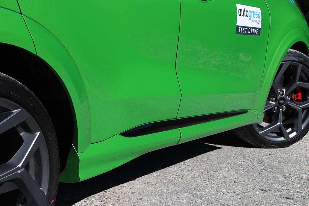 Το αθλητικό και μυώδες «σώμα» του τονίζεται από διάφορες απαραίτητες αλλά διακριτικές προσθήκες, ενώ το αποκλειστικό πράσινο χρώμα «Mean Green» λειτουργεί σαν μαγνήτης, γυρνώντας κεφάλια. Η καλλίγραμμη αισθητική του Puma ST τονίζεται περεταίρω μέσω του αεροδυναμικού πακέτου της Ford Performance. Το σπόιλερ στον εμπρός προφυλακτήρα και η αεροτομή οροφής αυξάνουν την κάθετη δύναμη κατά 80%, μαζί με διαχύτη στον πίσω προφυλακτήρα. Οι γρίλιες στη μάσκα και στον αεραγωγό του εμπρός προφυλακτήρα, είναι σχεδιασμένες με γνώμονα την παροχή βελτιωμένης ψύξης στον κινητήρα. Οροφή, περίγραμμα μάσκας, πλευρικές προσθήκες, καλύμματα καθρεπτών και αεροτομή προσφέρονται σε φινίρισμα gloss black, συνδυαζόμενες με στάνταρ ζάντες 19 ιντσών και 8 διαφορετικά χρώματα αμαξώματος. Τα κόκκινα λογότυπα ST μαζί με τις ίδιας απόχρωσης δαγκάνες των φρένων και τις δύο νίκελ απολήξεις τις εξάτμισης, συμπληρώνουν το σπορ κοστούμι.