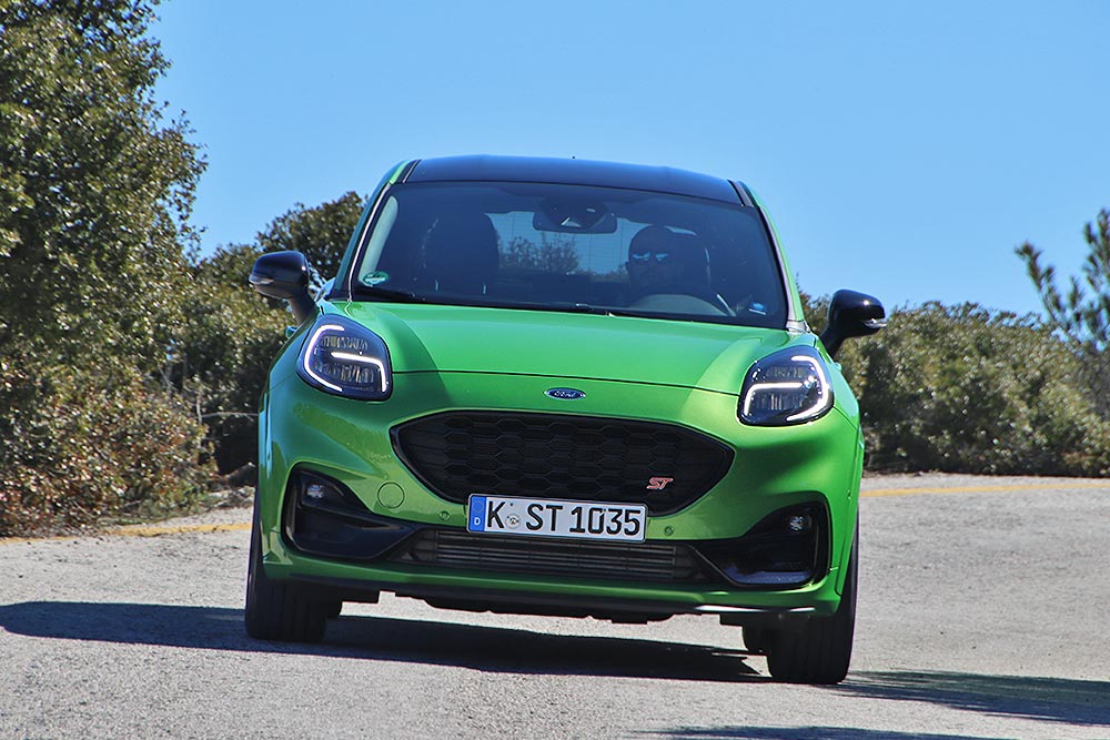 Όπως είπαμε και στην αρχή, το Ford Puma ST προ(σ)καλεί τον οδηγό του να το πάρει και να φύγει για τα βουνά, προς αναζήτηση μιας σφιχτής φιδίσιας διαδρομής. Σίγουρα και στις ευθείες είναι απολαυστικό, όπως ακόμα και στις πιο κοντινές μετακινήσεις, αφού πρόκειται για ένα αυτοκίνητο που φτιάχνει τη διάθεση. Οι αλλαγές που έχουν κάνει οι μηχανικοί της Ford είναι πολλές και σίγουρα άκρως επιτυχημένες. Πιο αναλυτικά, το σύστημα διεύθυνσης παρουσιάζεται 25% ταχύτερο από εκείνο των απλών Puma, διαθέτοντας αναβαθμισμένο ακραξονίο με μικρότερο βραχίονα τιμονιού και ταχύτερη κρεμαγιέρα, ενώ ο ημιάκαμπτος άξονας πίσω είναι ενισχυμένος κατά 40% σε σχέση με το Fiesta ST. Το προαιρετικό Performance Pack προσθέτει ειδικά εξελιγμένα ελαστικά Michelin Pilot Sport 4 και μπλοκέ διαφορικό της Quaife, που συνεργάζεται με Torque Vectoring Control και βελτιστοποιεί την ελκτική πρόσφυση των εμπρός τροχών. Η απόδοση του συστήματος πέδησης έχει επίσης ενισχυθεί, με δίσκους μπροστά διαμέτρου 325 χλστ. και πίσω 271 χλστ.