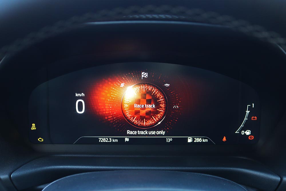 Για πρώτη φορά μάλιστα σε μοντέλο ST, υπάρχει πρόγραμμα λειτουργίας Eco, αλλά μάλλον το Normal είναι αυτό που θα χρησιμοποιηθεί περισσότερο, γιατί είναι το πιο κατάλληλο και ισορροπημένο για καθημερινή χρήση. Με το Sport η απόκριση στο γκάζι είναι πιο άμεση, το τιμόνι βαραίνει και ο ήχος από την εξάτμιση γίνεται πιο έντονος. Στην επιλογή Race track όλα τα δυναμικά χαρακτηριστικά του αυτοκινήτου είναι πιο τονισμένα, το traction control απενεργοποιείται και το ESC αφήνει το αυτοκίνητο να γλιστρήσει. Όσον αφορά την κατανάλωση, αυτή σε νορμάλ οδήγηση βρέθηκε στη δοκιμή στα 10,4 λτ./100 χλμ. Το… κακό είναι ότι το Puma ST σε «παρασύρει» να πατάς πιο βαθιά το γκάζι, που σημαίνει ότι οι απαιτήσεις για βενζίνη ανεβαίνουν πολύ υψηλότερα.