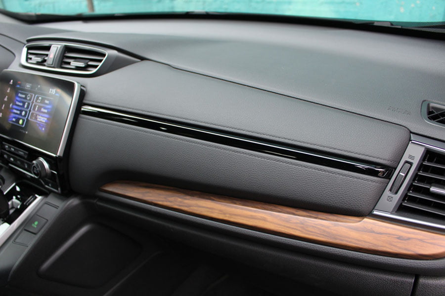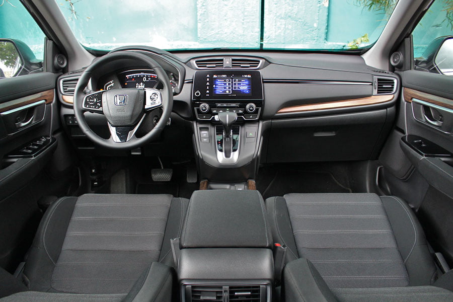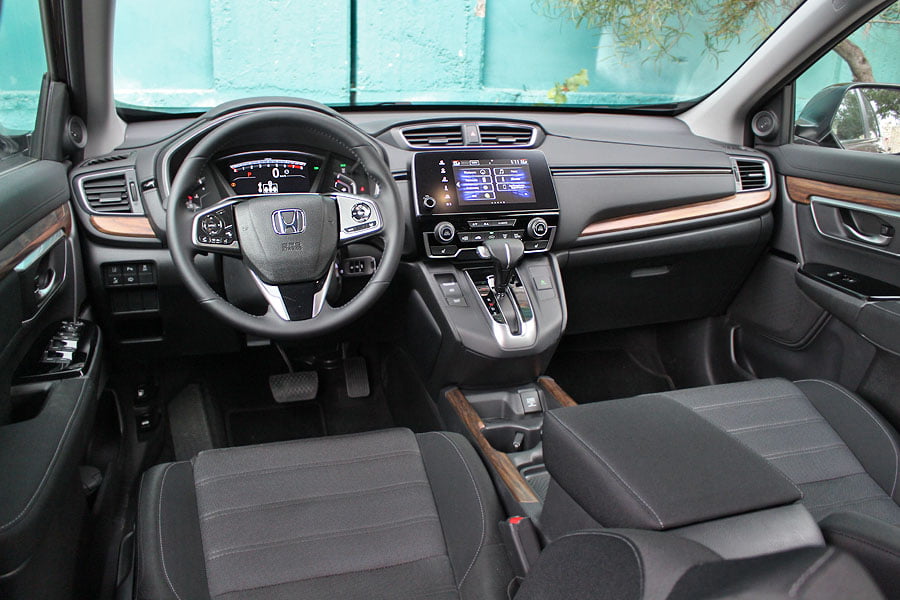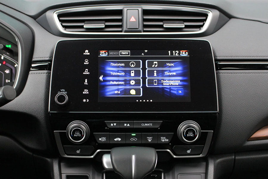 Ο θάλαμος των επιβατών του νέου Honda CR-V είναι σε θέση να καλύψει πλήρως και σε κάθε επίπεδο τον απαιτητικό αγοραστή ενός τέτοιου SUV αυτής της τιμής. Ποιοτικά μπορεί σε υλικά να μη φτάνει τα premium SUV, ωστόσο είναι προσεγμένο σε φινίρισμα, συναρμογή και έχει τον απαραίτητο αέρα πολυτελείας. Στο ταμπλό κυριαρχούν ο διαμορφώσιμος ψηφιακός πίνακας οργάνων των 7 ιντσών και η οθόνη αφής του συστήματος πολυμέσων των 7 ιντσών, με τα όχι ιδιαίτερα καλύτερα δυνατά γραφικά και αμεσότητα. Ο επιλογέας των ταχυτήτων του CVT κιβωτίου είναι και σε αυτό το CR-V τοποθετημένος ψηλά, ευνοώντας την εργονομία και αφήνοντας περισσότερο ελεύθερο χώρο για θήκες, οι οποίες είναι ένα είδος εν αφθονία στο εσωτερικό του αυτοκινήτου. Αμφιβόλου αισθητικής θα λέγαμε ότι είναι τα διακοσμητικά απομίμησης ξύλου στο ταμπλό και στις πόρτες.