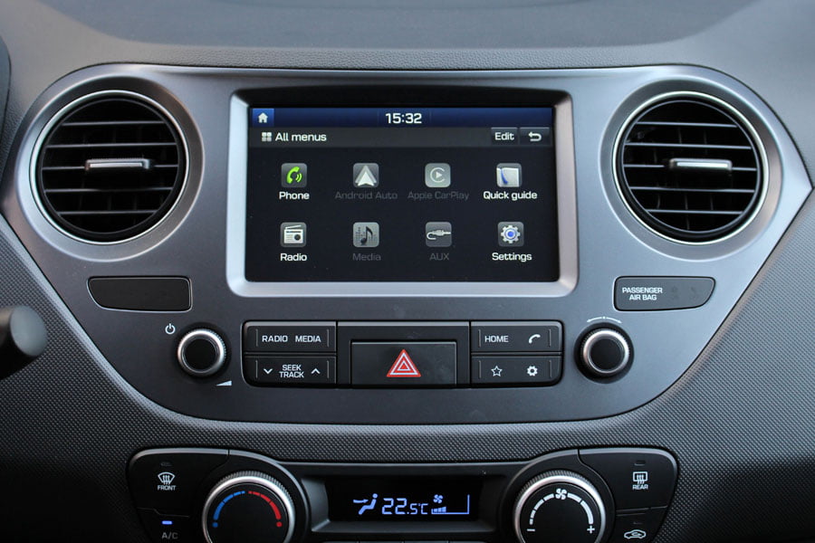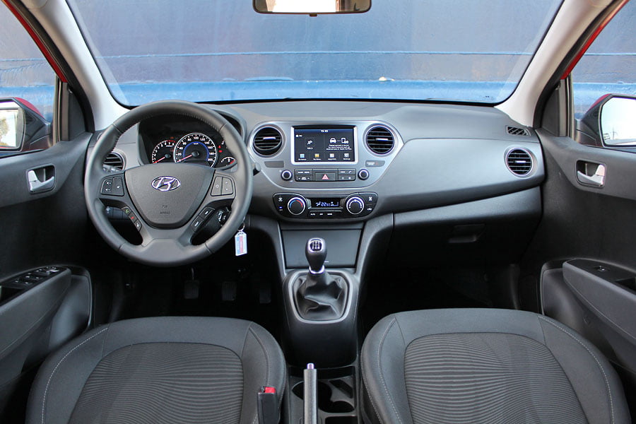 Ο θάλαμος επιβατών του Hyundai i10 θυμίζει περισσότερο μικρό αυτοκίνητο παρά μίνι, καθώς δεν υπάρχει καμία ακάλυπτη μεταλλική επιφάνεια. Στο μοντέρνου σχεδιασμού εσωτερικό τα σκληρά πλαστικά είναι ποιοτικά και με πολύ προσεγμένη συναρμογή. Ο οδηγός θα βρει εύκολα την κατάλληλη θέση, δεν θα αντιμετωπίσει κανένα πρόβλημα με την εργονομία και θα εξυπηρετηθεί από το εύχρηστο σύστημα πολυμέσων με την έγχρωμη οθόνη αφής 7 ιντσών. Την πρακτικότητα ενισχύουν με την σειρά τους οι πολλές θήκες για μικροαντικείμενα και ποτήρια ή μικρά μπουκάλια. Από πλευράς χώρων, τέσσερα άτομα θα φιλοξενηθούν χωρίς παραχωρήσεις, ενώ το πορτ μπαγκάζ των 252 λίτρων είναι από τα μεγαλύτερα της κατηγορίας.
