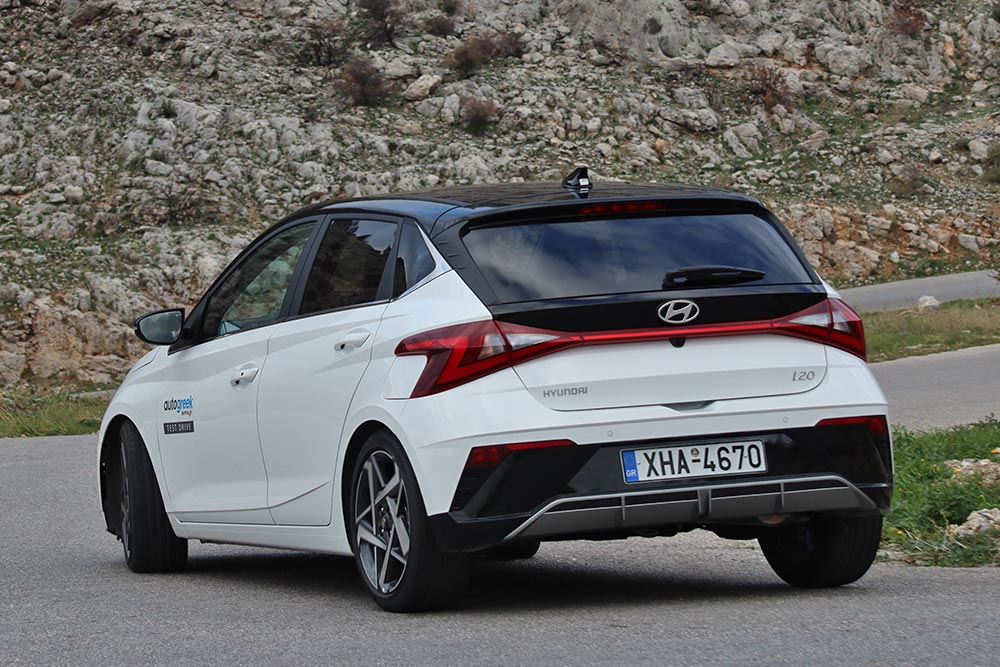 Ο ιδιαίτερα αξιόλογος και με ραφιναρισμένη λειτουργία 3κύλινδρος υπερτροφοδοτούμενος κινητήρας των 998 κ.εκ. με την ισχύ των 100 ίππων, παρέμεινε ως είχε και ταιριάζει ιδανικά στο αμάξωμα του i20. Συνεργάζεται με ένα ορθώς κλιμακωμένο χειροκίνητο κιβώτιο 6 ταχυτήτων (6iMT το 48V Hybrid), ενώ όσοι θέλουν ακόμα περισσότερη άνεση στην οδήγηση υπάρχει και η επιλογή του 7DCT. Με το παραδοσιακό σασμάν, το μοτέρ διακρίνεται κατευθείαν για το τράβηγμα από τις χαμηλές στροφές, χάρις στα 172 Nm ροπής που αποδίδονται από τις 1.500 σ.α.λ. Χαρακτηριστικό που ευνοεί ιδιαίτερα την ελαστικότητα στις συνεχόμενες αυξομειώσεις των ρυθμών κίνησης στην πόλη, μιας και ο οδηγός δεν χρειάζεται να καταφεύγει συνέχεια στον εύχρηστο λεβιέ. Ο 1.0 T-GDI είναι πρόθυμος στην αύξηση ρυθμών (0-100 χλμ./ώρα σε 10,4 δλ.), φτάνει με γραμμικό τρόπο και δίχως κομπιάσματα ψηλά νούμερα στο στροφόμετρο, ακόμα και με το πρόγραμμα Normal. Με την επιλογή Sport από το Drive Mode η απόκριση γίνεται πιο άμεση και το τιμόνι αποκτά λίγο περισσότερο βάρος. Στο ταξίδι διατηρεί άνετα ταχύτητες της τάξεως των 130 χλμ./ώρα με περίπου 2.900 σ.α.λ. και 6η. Σχετικά με την κατανάλωση, η μέση τιμή των 7,2 λτ./100 χλμ. στη δοκιμή είναι ένα λογικό νούμερο και επιτυγχάνεται χωρίς «αυγό» στο πεντάλ του γκαζιού.