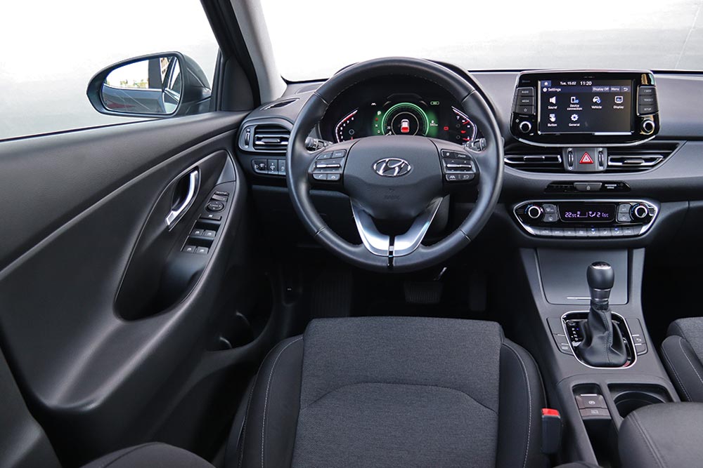 Με το που μπαίνει κανείς στο εσωτερικό του i30, νιώθει αμέσως οικεία και αντιλαμβάνεται τη φροντίδα που έχει δοθεί στην κατασκευή του. Μαλακά υλικά συναντώνται στο ταμπλό και στο άνω τμήμα των θυρών, τα οποία συμπληρώνονται από γεροδεμένη συναρμογή και με ενώσεις μεταξύ των επιμέρους τμημάτων που έχουν γίνει με προσοχή. Οι διακόπτες είναι σωστά «τακτοποιημένοι» και συμβάλλουν στην πολύ καλή εργονομία, μαζί με την εύχρηστη οθόνη των 8 ιντσών του infotainment. Οι πολλές θήκες στο εμπρός τμήμα συνεισφέρουν στην πρακτικότητα, ενώ τα αναπαυτικά καθίσματα διατηρούν ξεκούραστους τους φιλοξενούμενους.